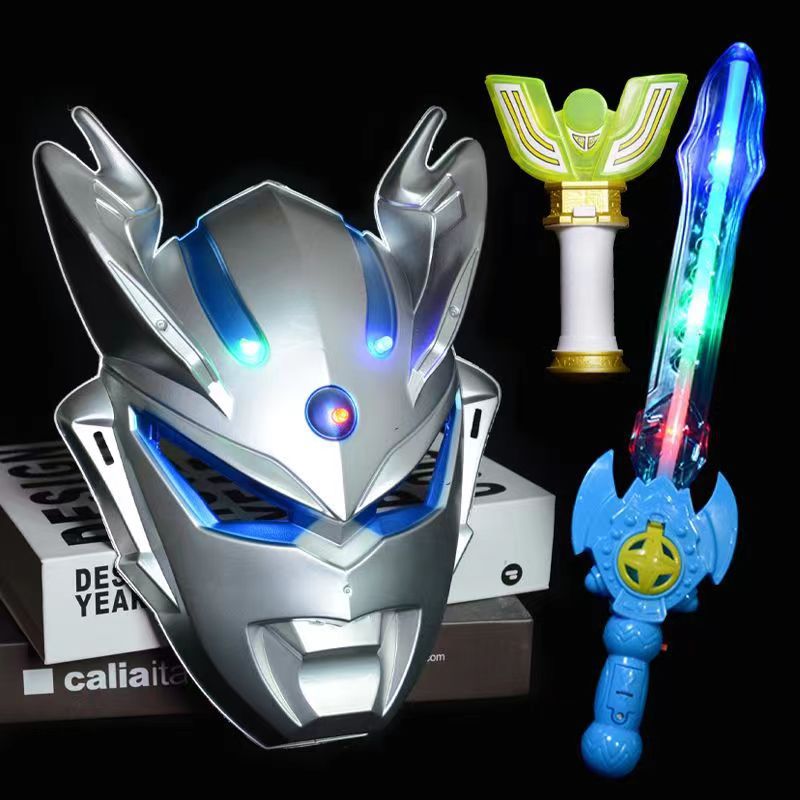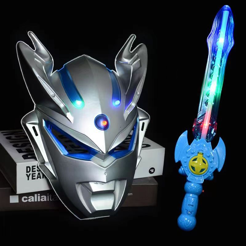 儿童发光奥特曼面具赛罗泰罗套装卡通动漫 男孩面具 刀剑玩具套餐
