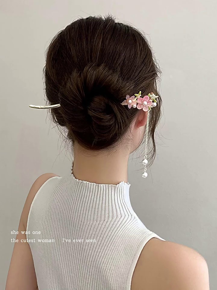 新中式流苏花朵发簪女古风高级感盘头发簪子汉服旗袍发钗子头饰品