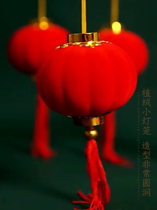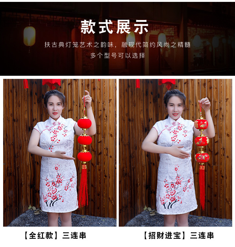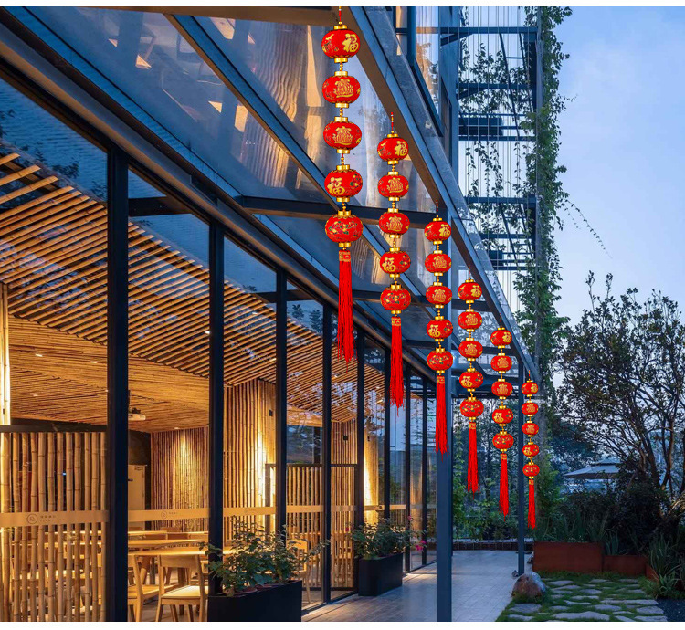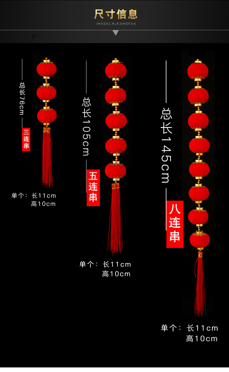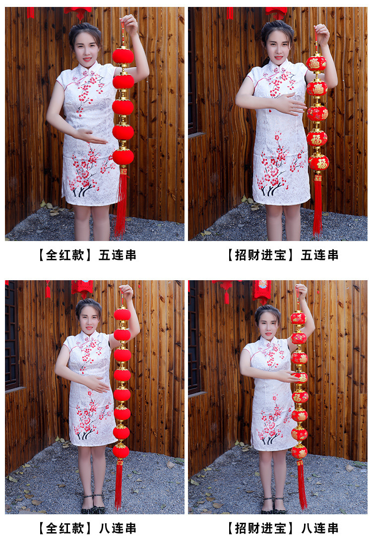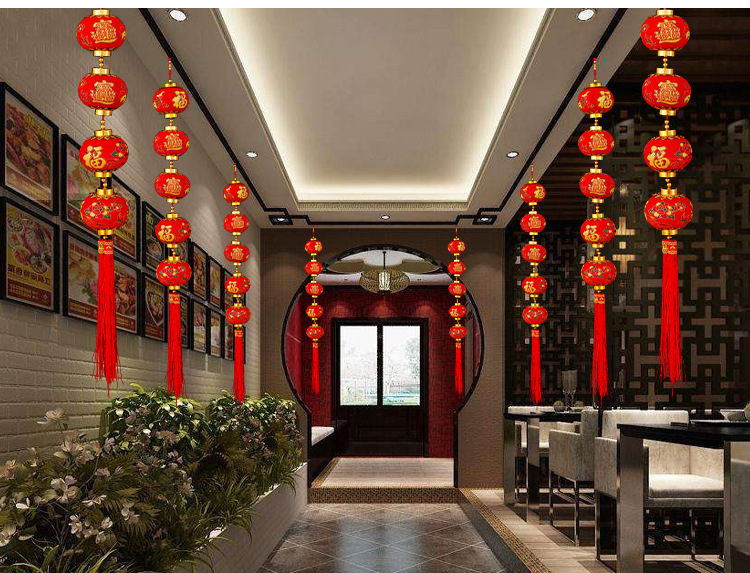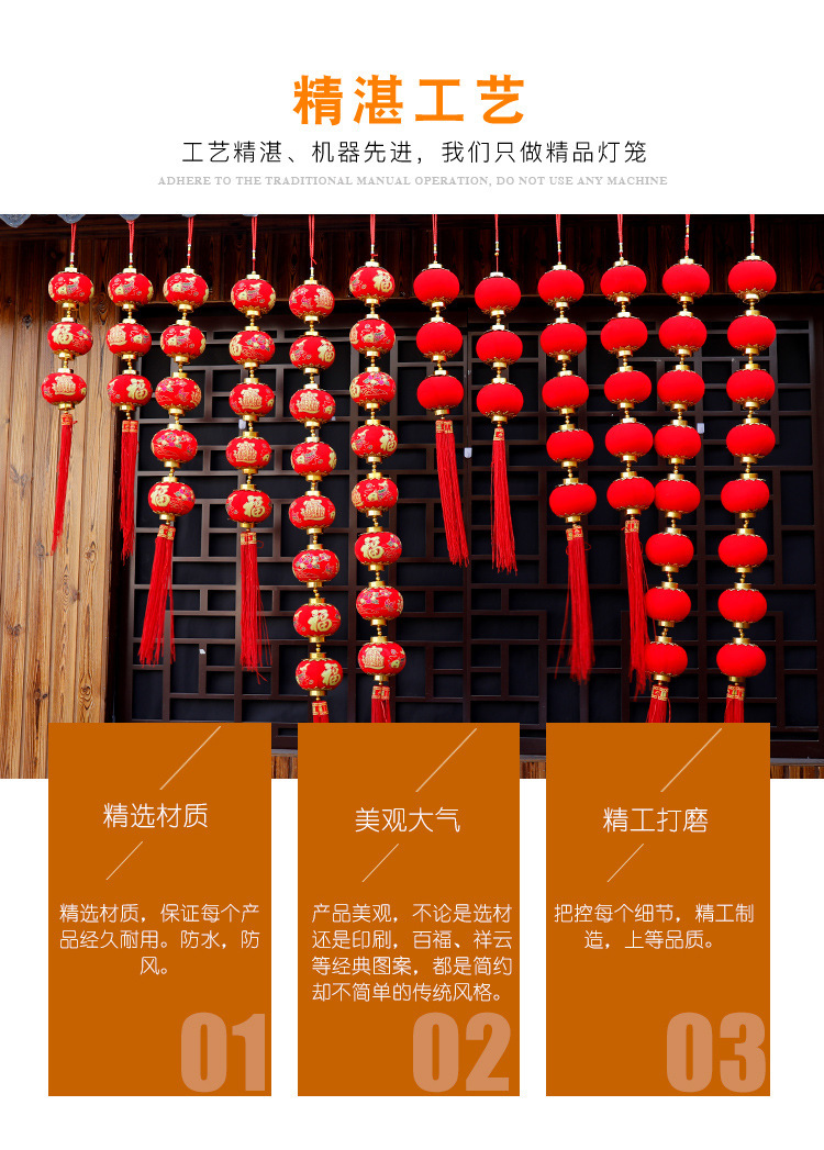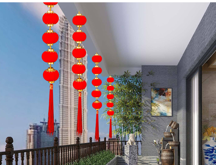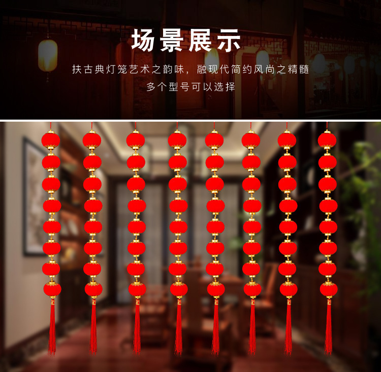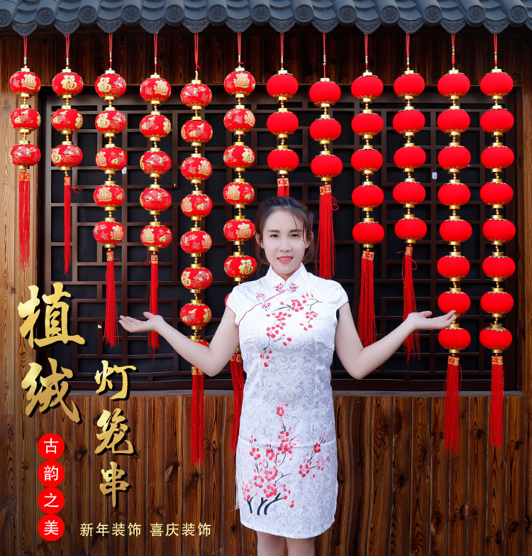 植绒小灯笼串挂饰大红连串灯笼元旦春节新年装饰品结婚时场景布置