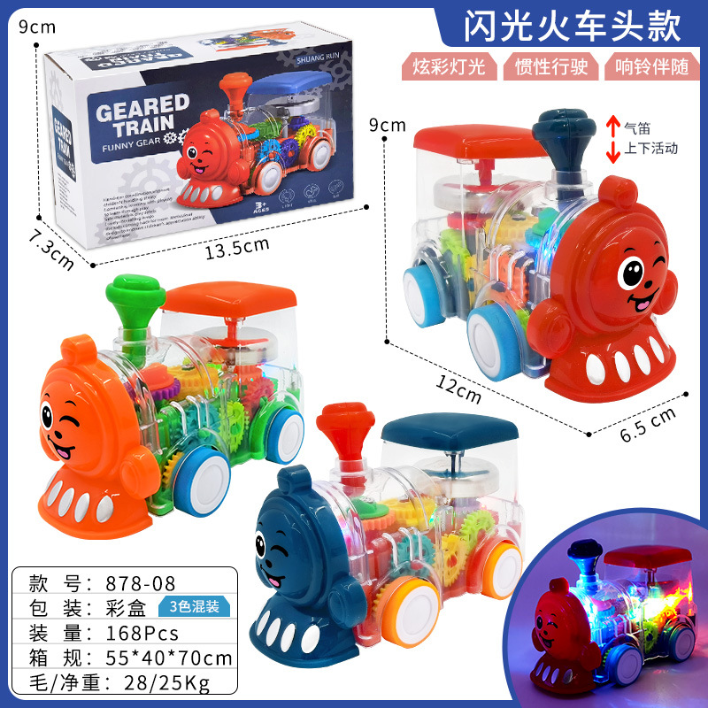 透明齿轮响铃车发光回力小火车巴士万向灯光车儿童玩具礼物批发
