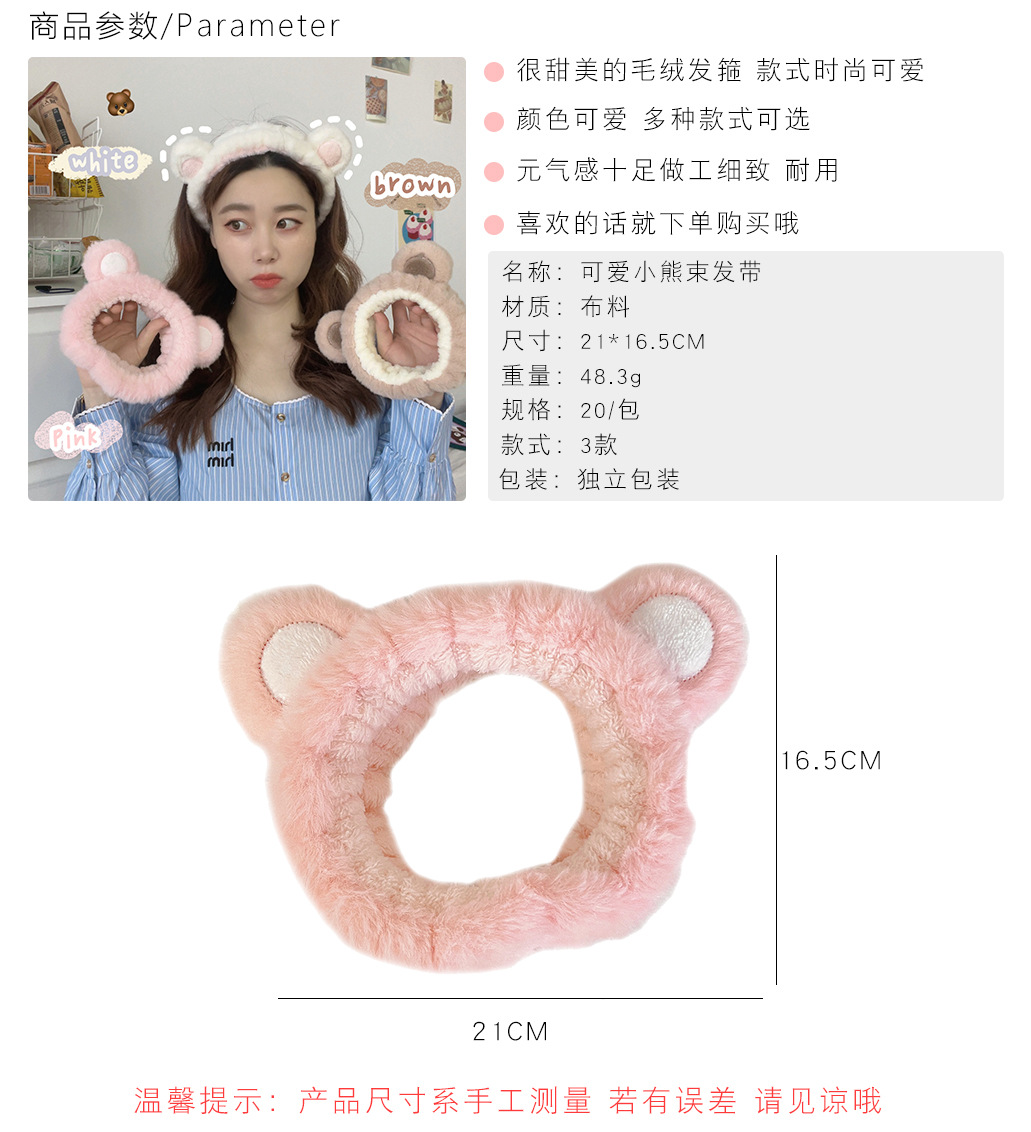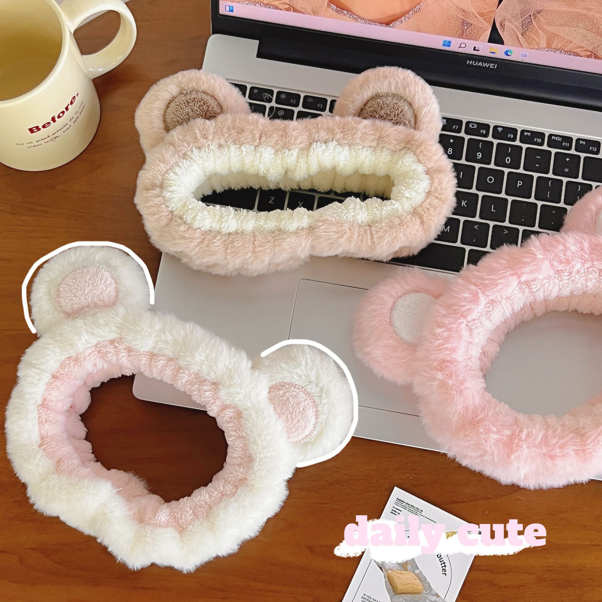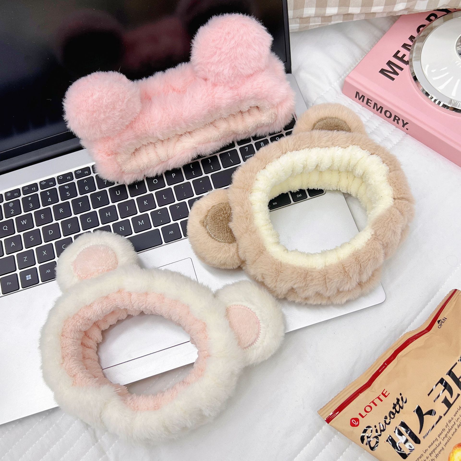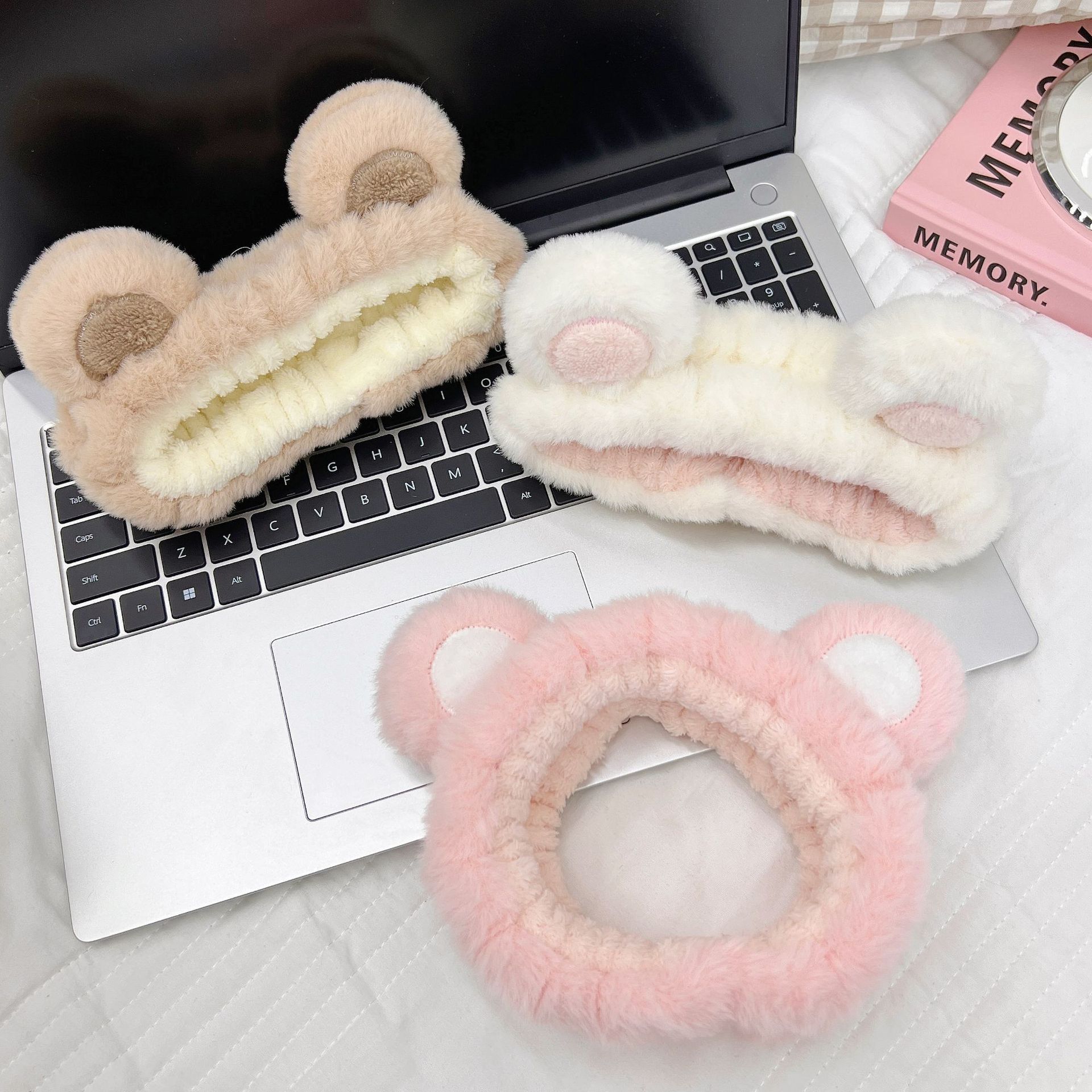 可爱小熊发箍立体卡通毛绒玩偶发带女粉色洗脸束发带宽边专用发饰