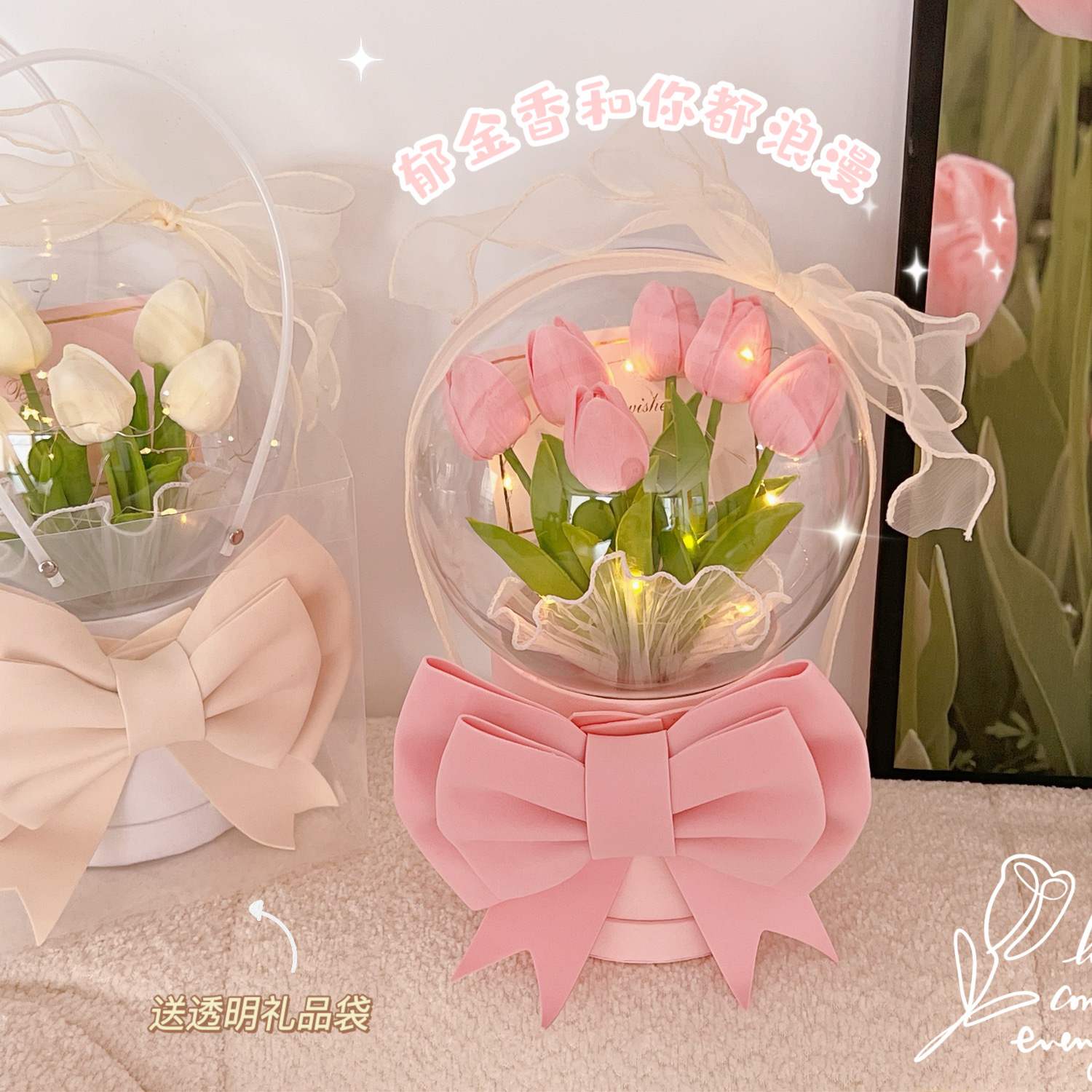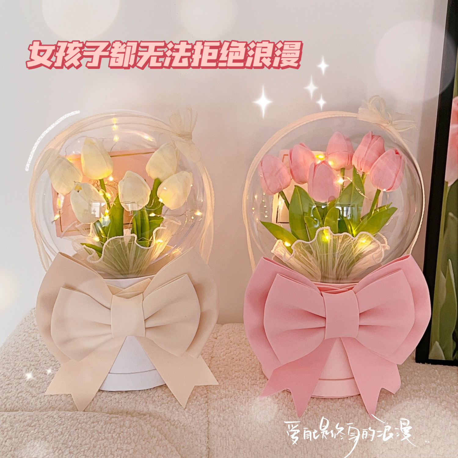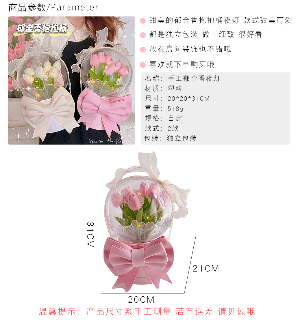 diy手工郁金香床头花朵小夜灯卧室女生生日礼物郁金香氛围灯台灯
