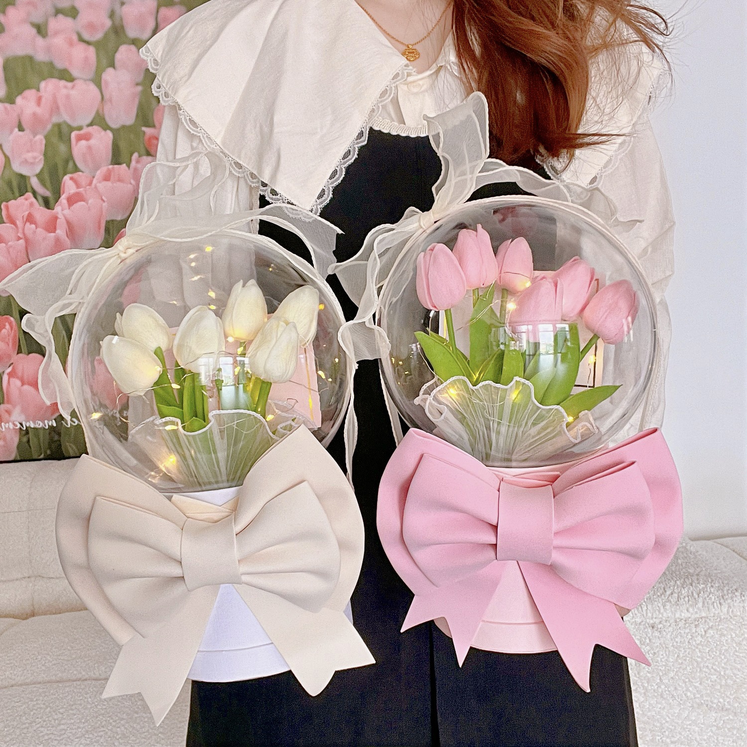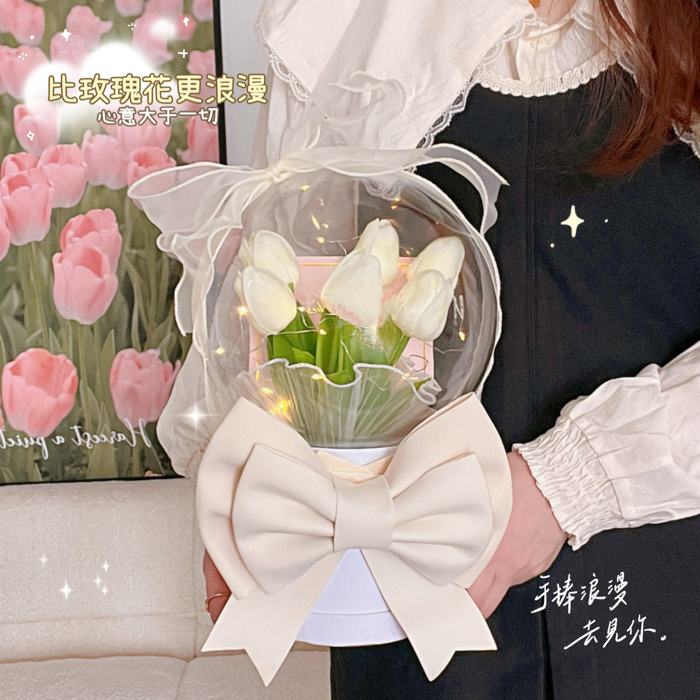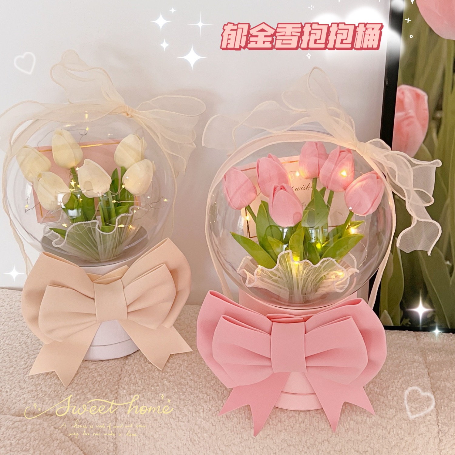 diy手工郁金香床头花朵小夜灯卧室女生生日礼物郁金香氛围灯台灯