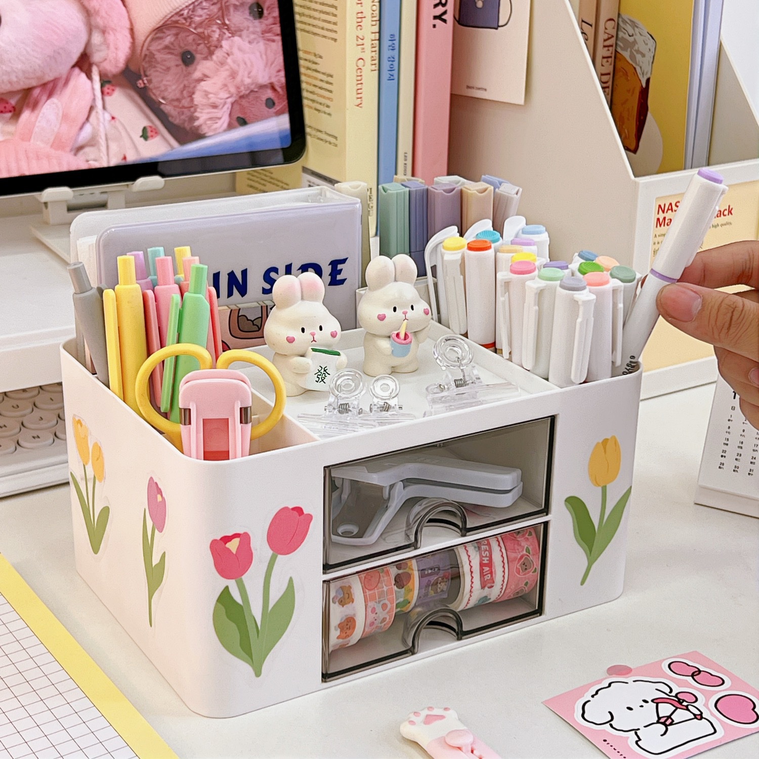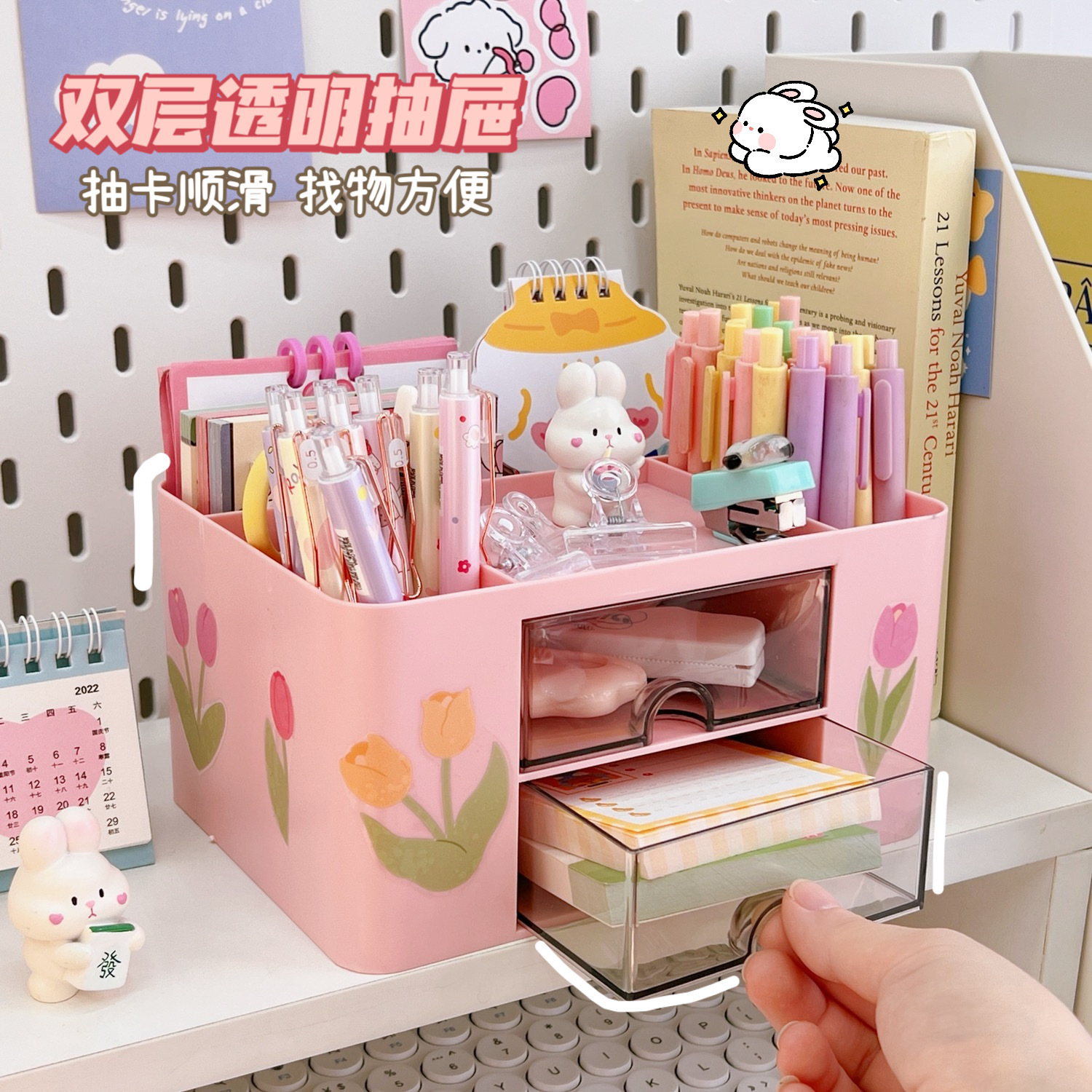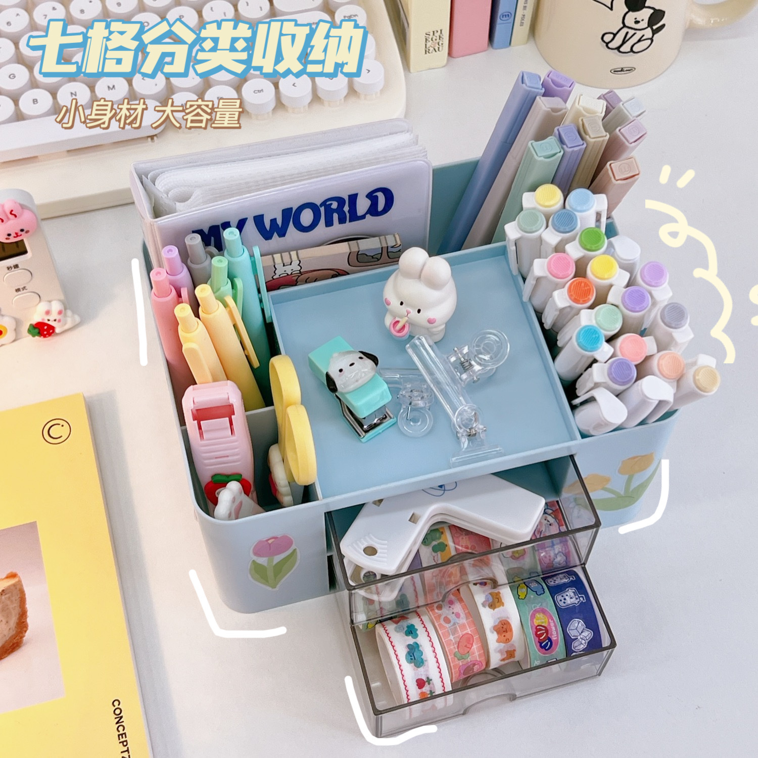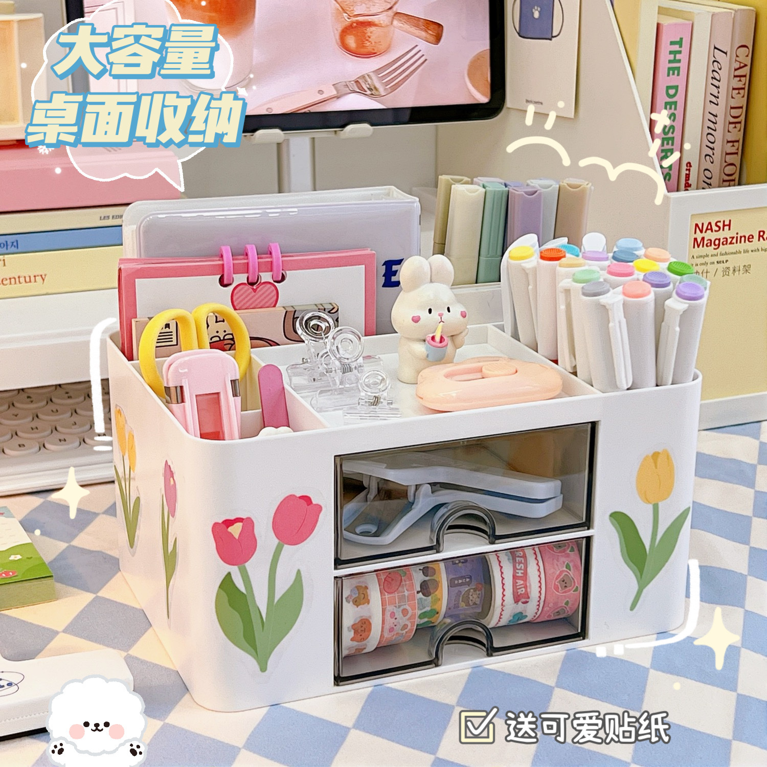 文具收纳盒桌面学生ins抽屉式笔筒柜办公室胶带发饰儿童小置物盒