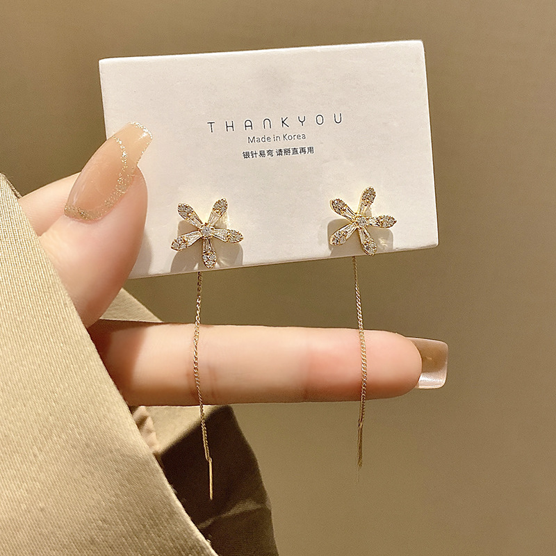 独特水晶花长款养耳洞流苏耳线耳环高级感耳饰2025年新款潮女显瘦