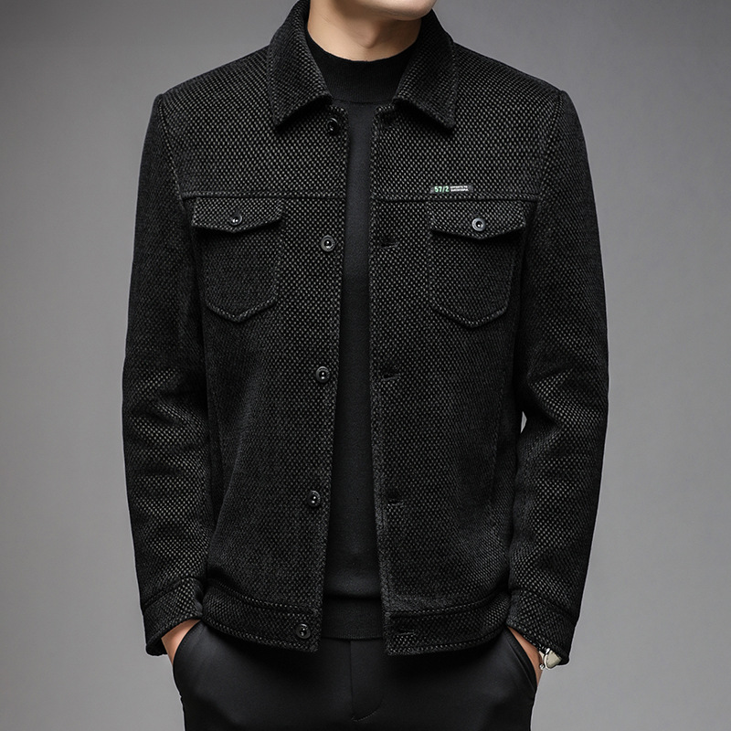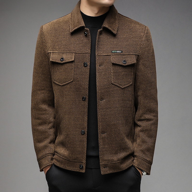 2022冬季新款时尚雪尼尔加厚外套中年男士保暖翻领休闲爸爸装夹克
