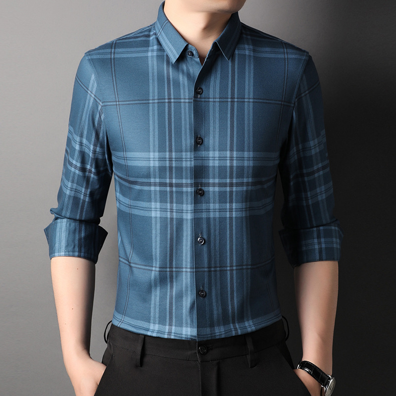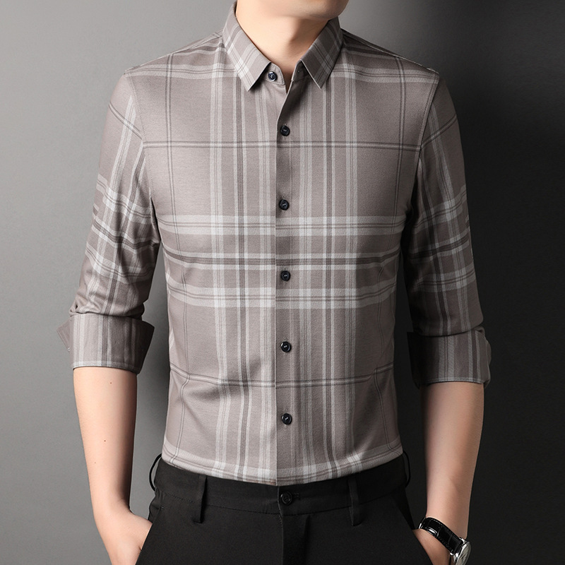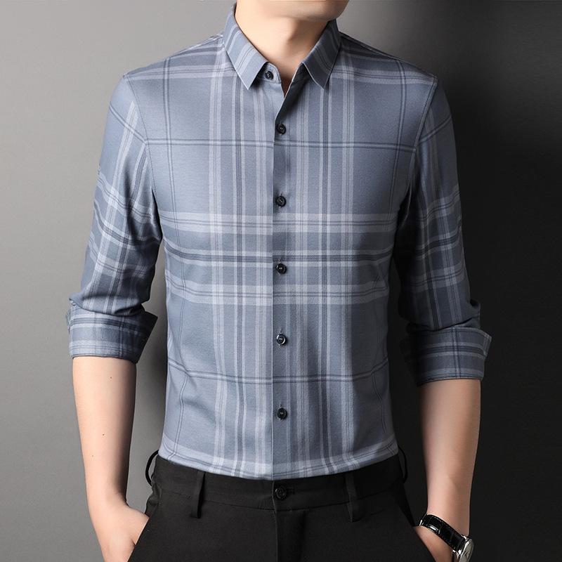 男装秋冬休闲含羊毛衬衫男商务休闲翻领百搭格子中年长袖开衫