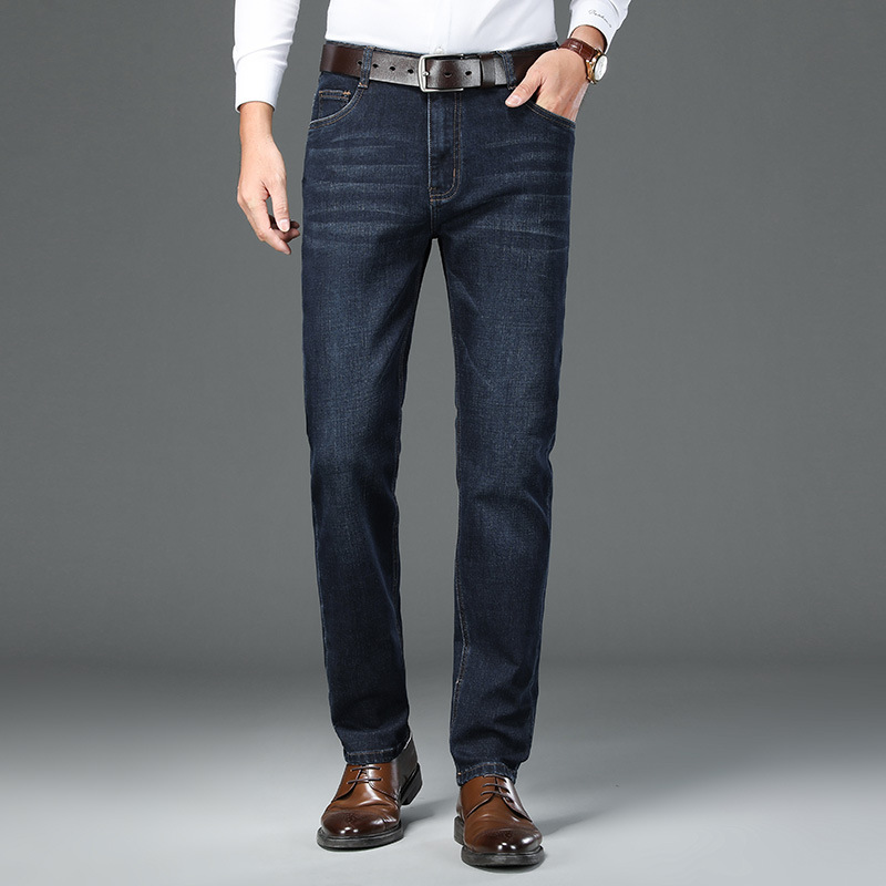 2022秋冬新款商务休闲中年男式长裤子色织底高腰小直筒潮流牛仔裤