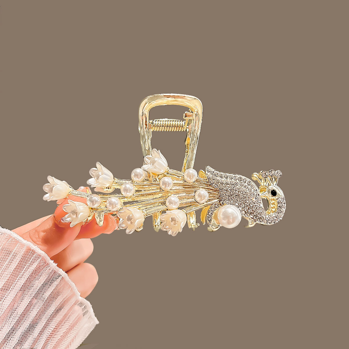 珍珠发饰女秋凤凰合金发夹抓夹大号鲨鱼夹子头饰