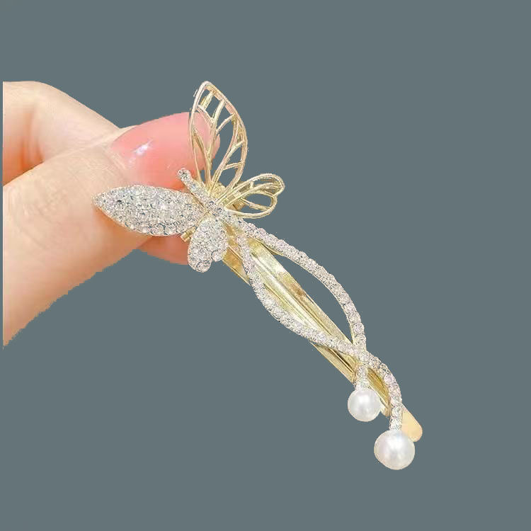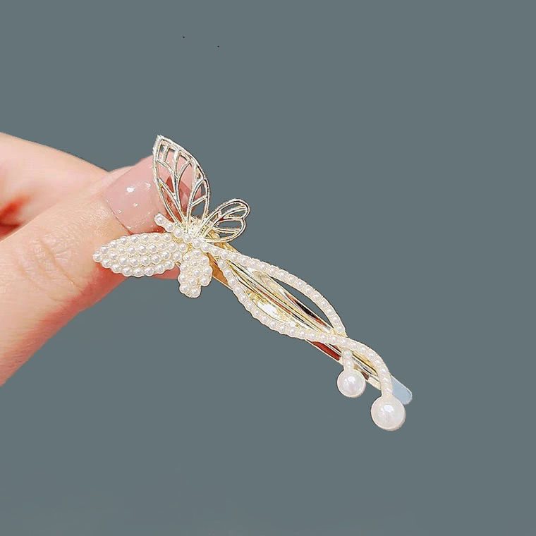 珍珠水钻一字发卡侧边发夹流苏蝴蝶刘海夹头饰