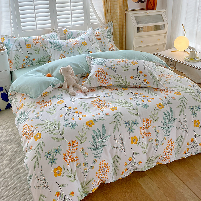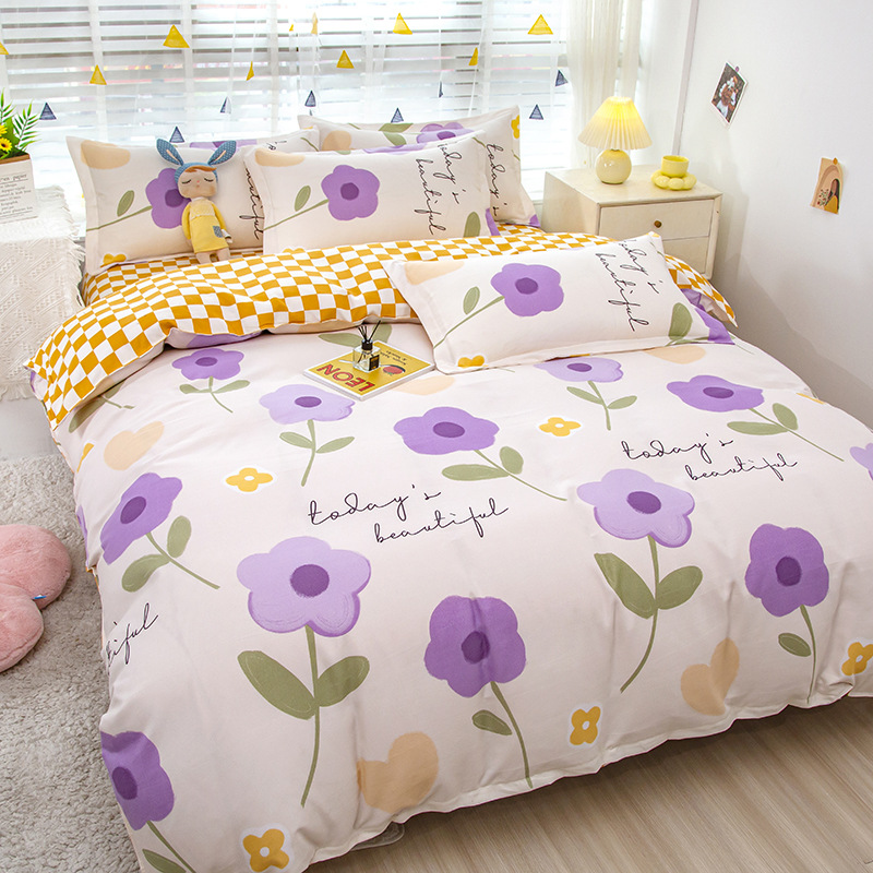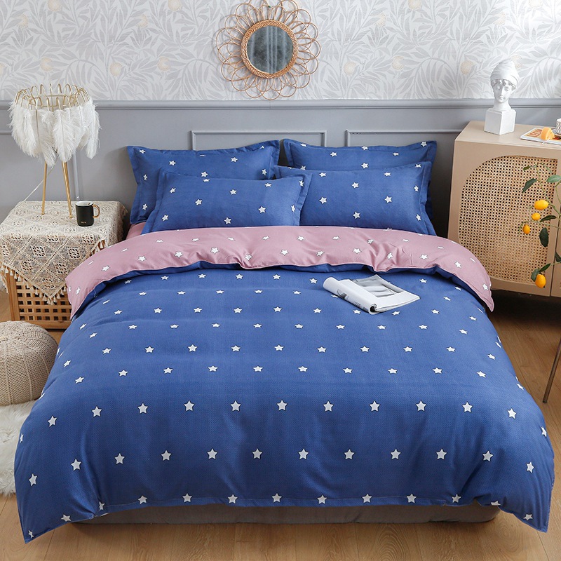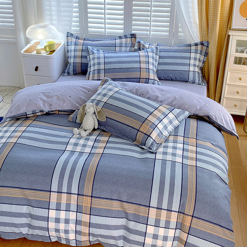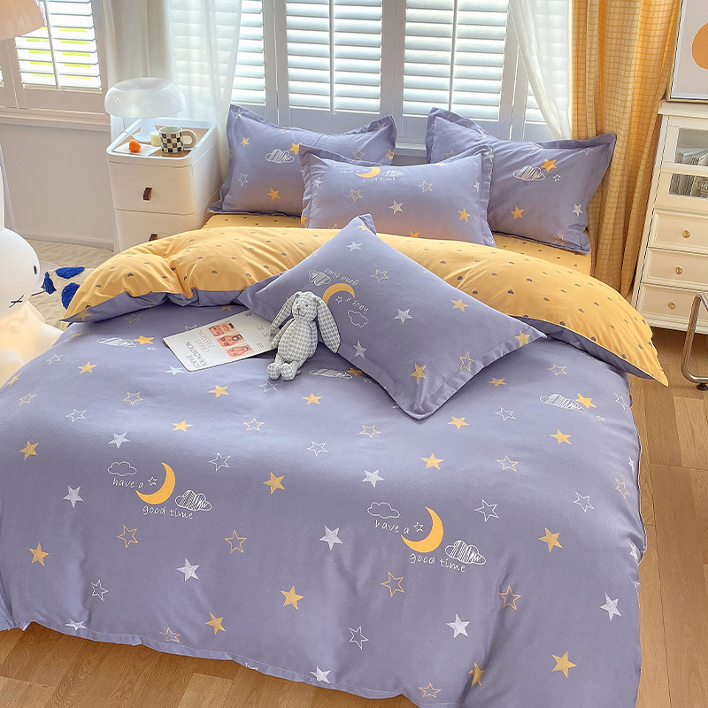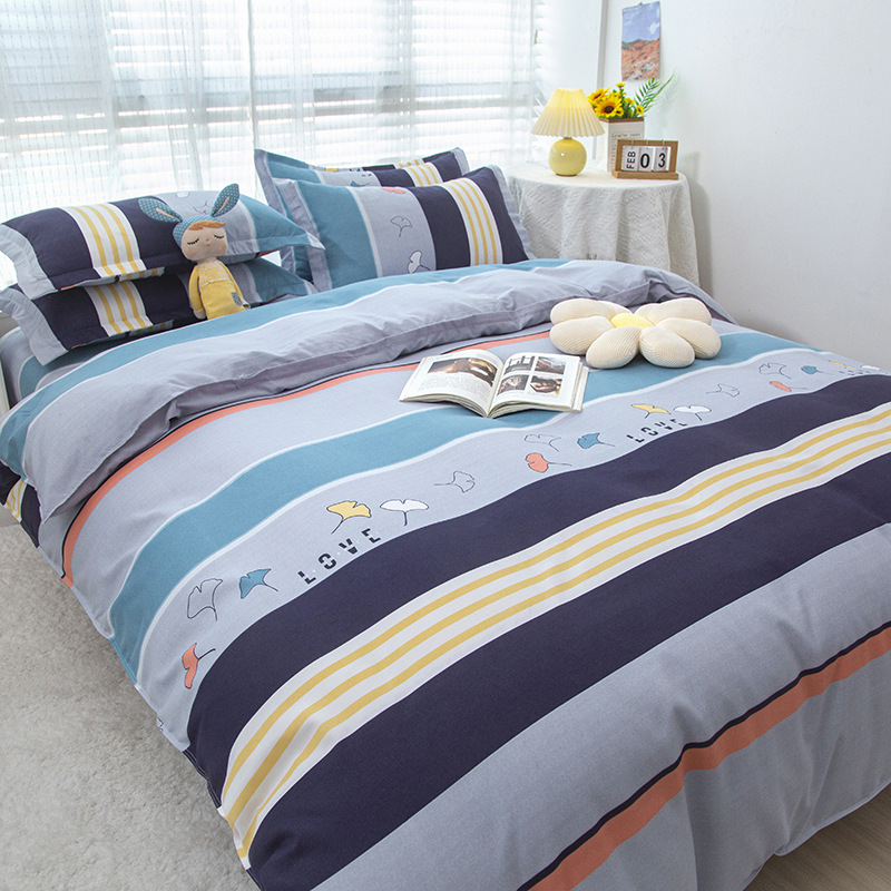 简约纯棉磨毛四件套加厚款小清新床单被套宿舍三件套床上用品批发