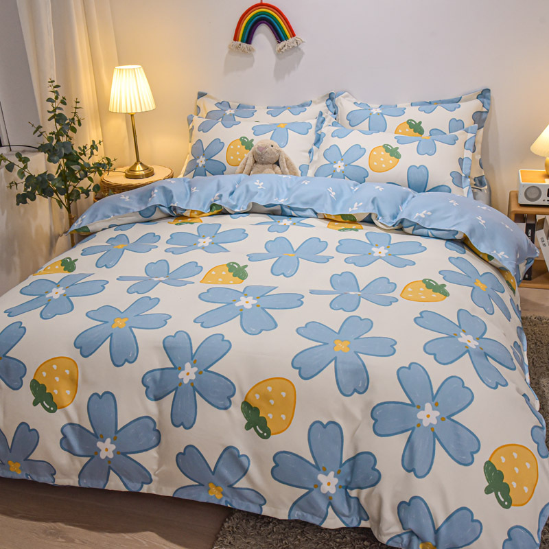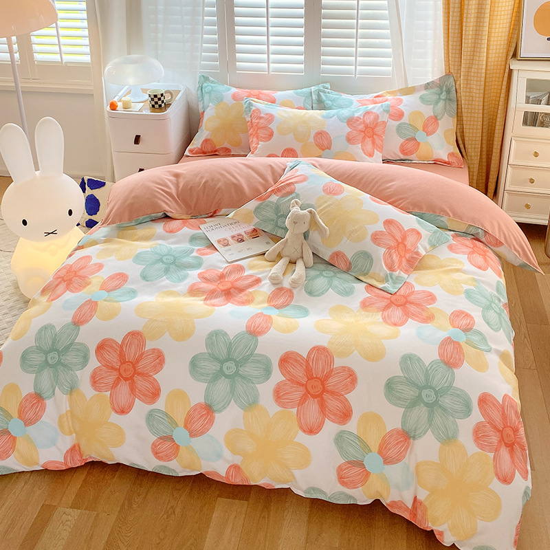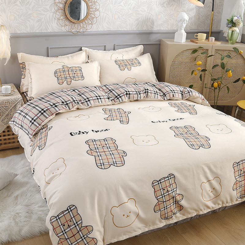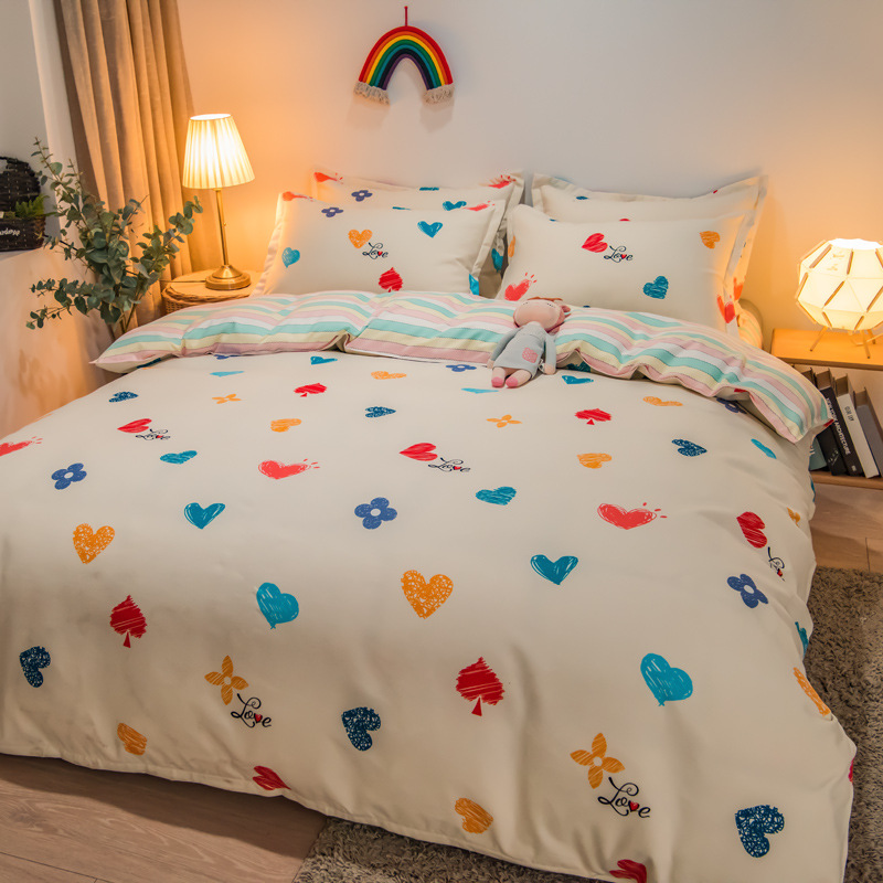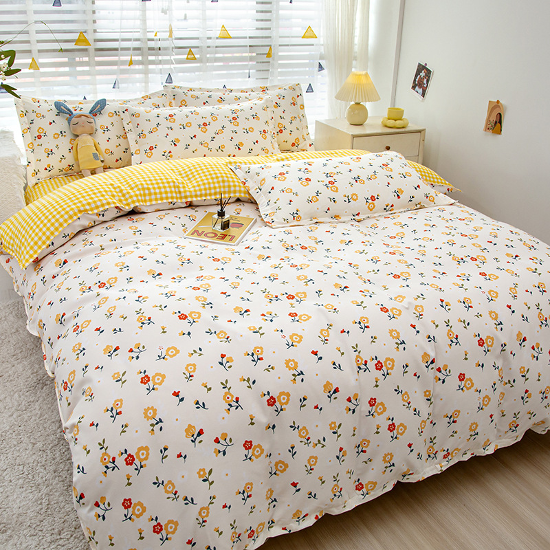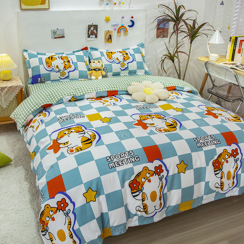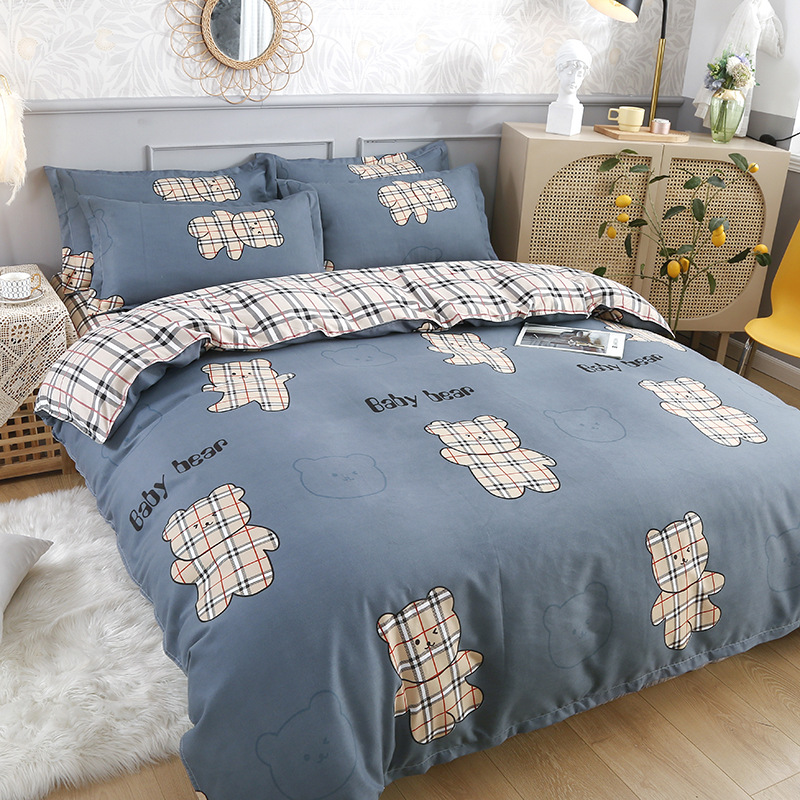 简约纯棉磨毛四件套加厚款小清新床单被套宿舍三件套床上用品批发