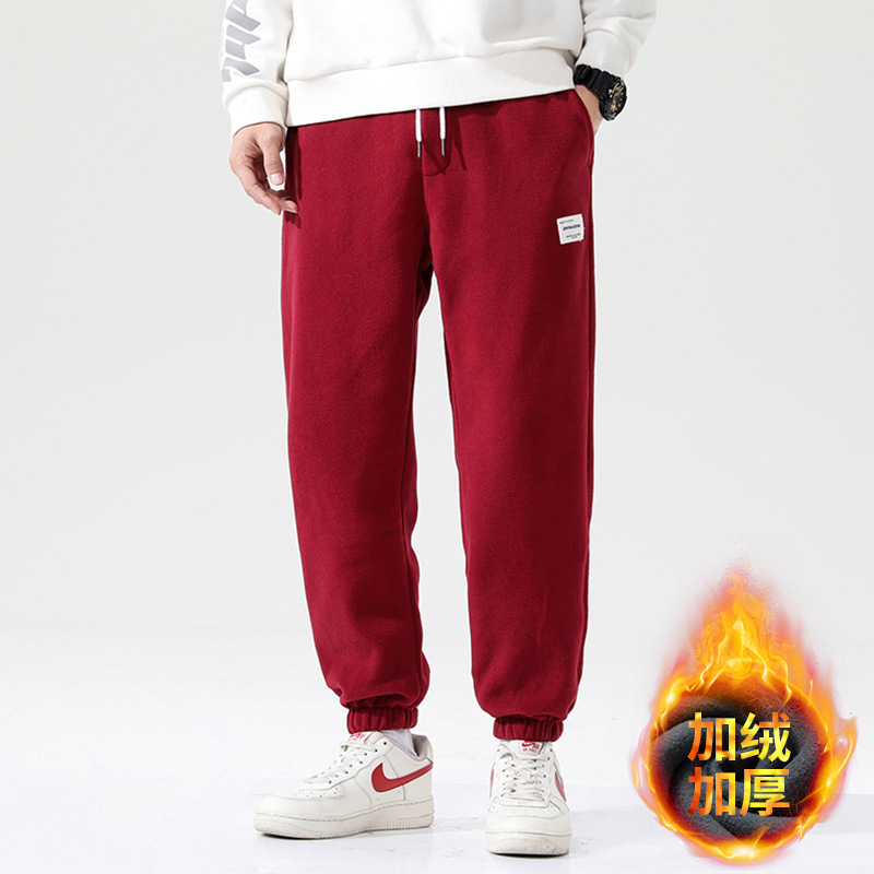 摇粒绒裤子男士秋冬韩版潮流宽松保暖休闲男裤加厚束脚运动卫裤男