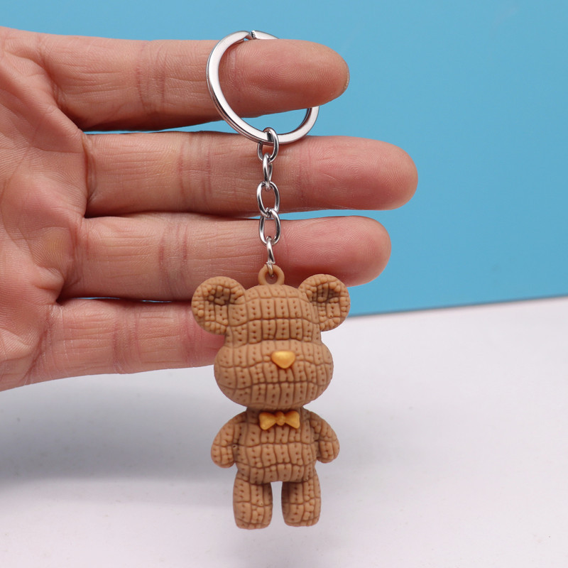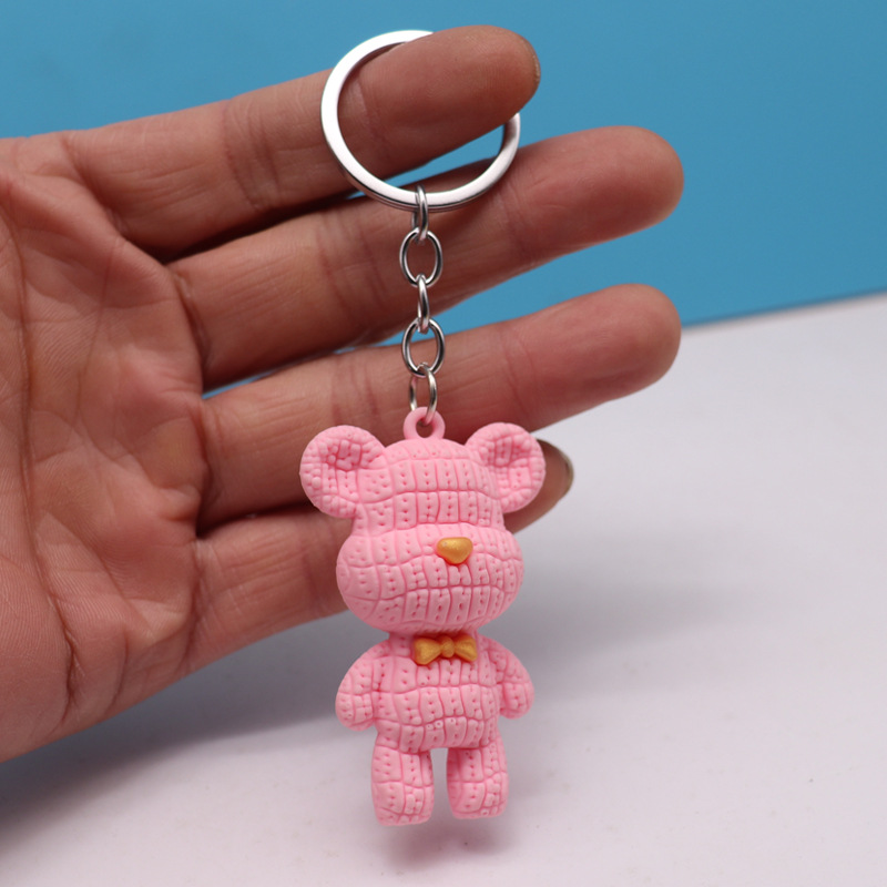 外贸跨境毛线熊钥匙扣PVC滴胶卡通可爱公仔暴力熊儿童礼品包挂件