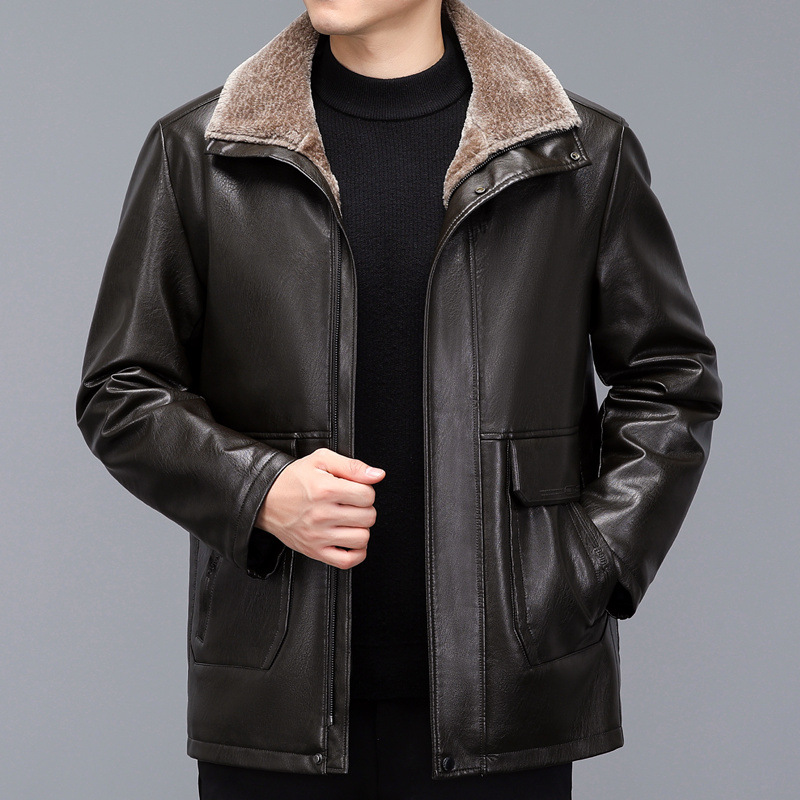 冬季海宁真皮加厚中年男士爸爸装皮夹克中长款皮毛一体皮衣男外套