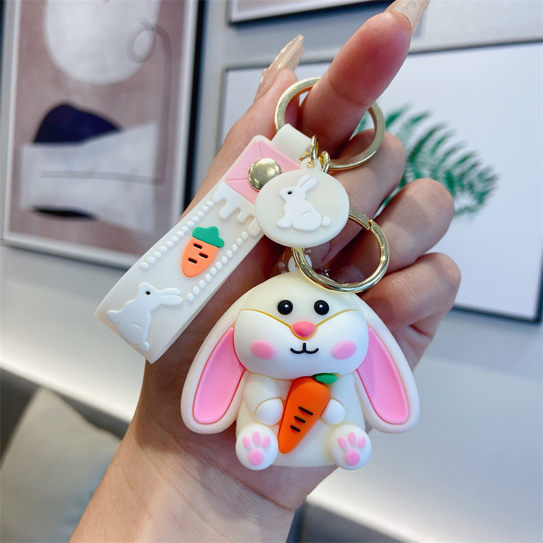 2023兔年迷你可爱萝卜小白兔公仔钥匙扣汽车挂件个性创意书包挂件