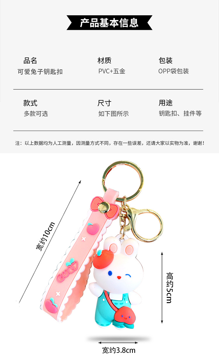 23兔年可爱小兔子公仔钥匙扣汽车挂件简约卡通大白兔玩偶钥匙链圈
