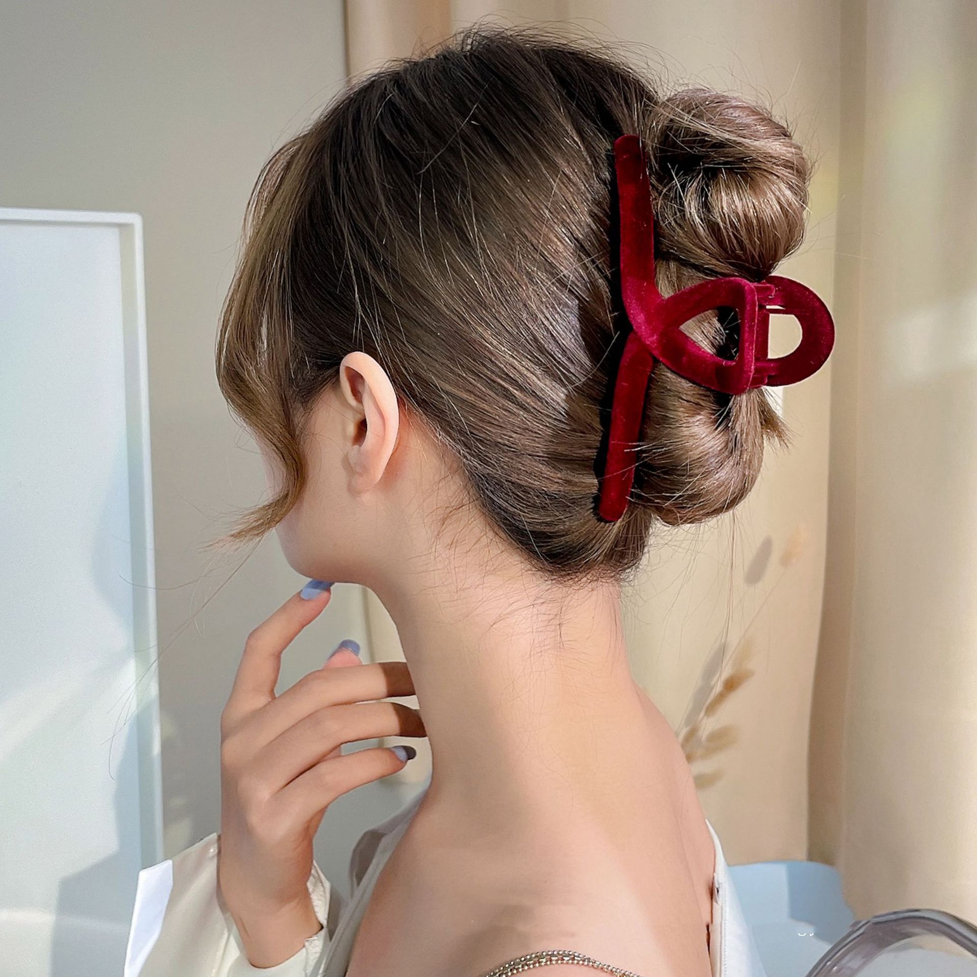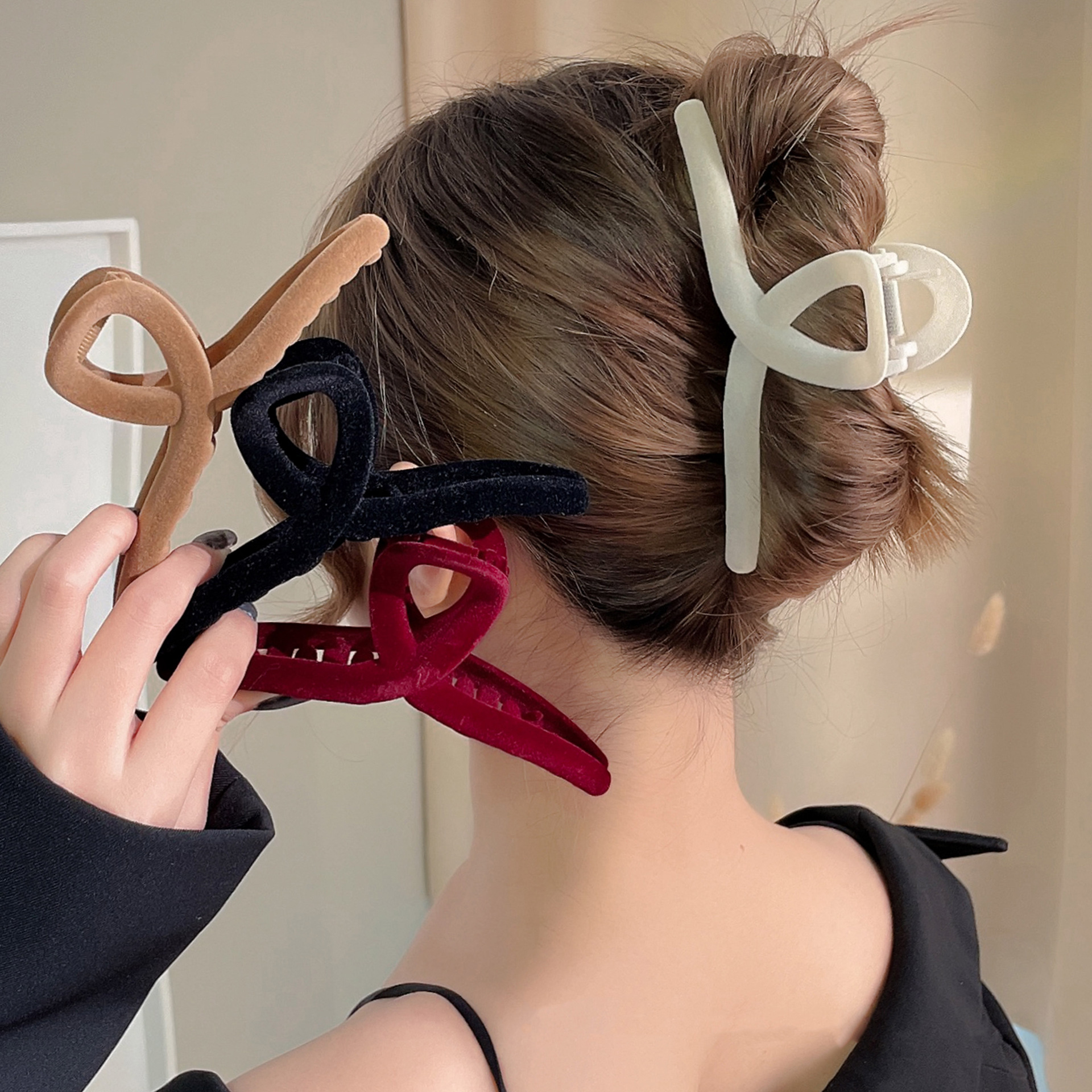 植绒复古网红抓夹秋冬高级感盘发后大号鲨鱼夹发夹头饰