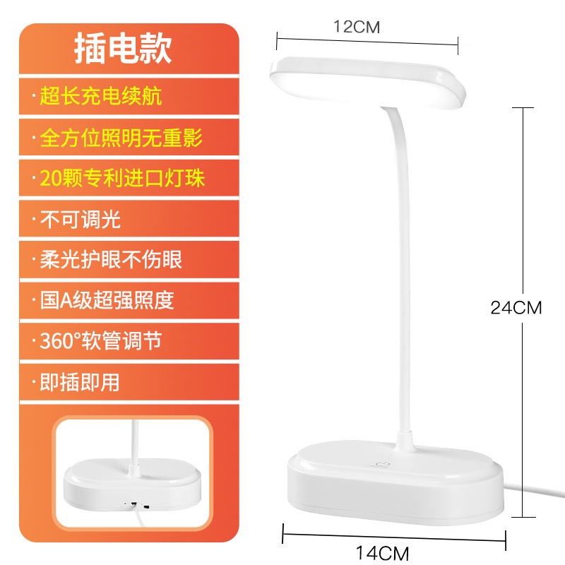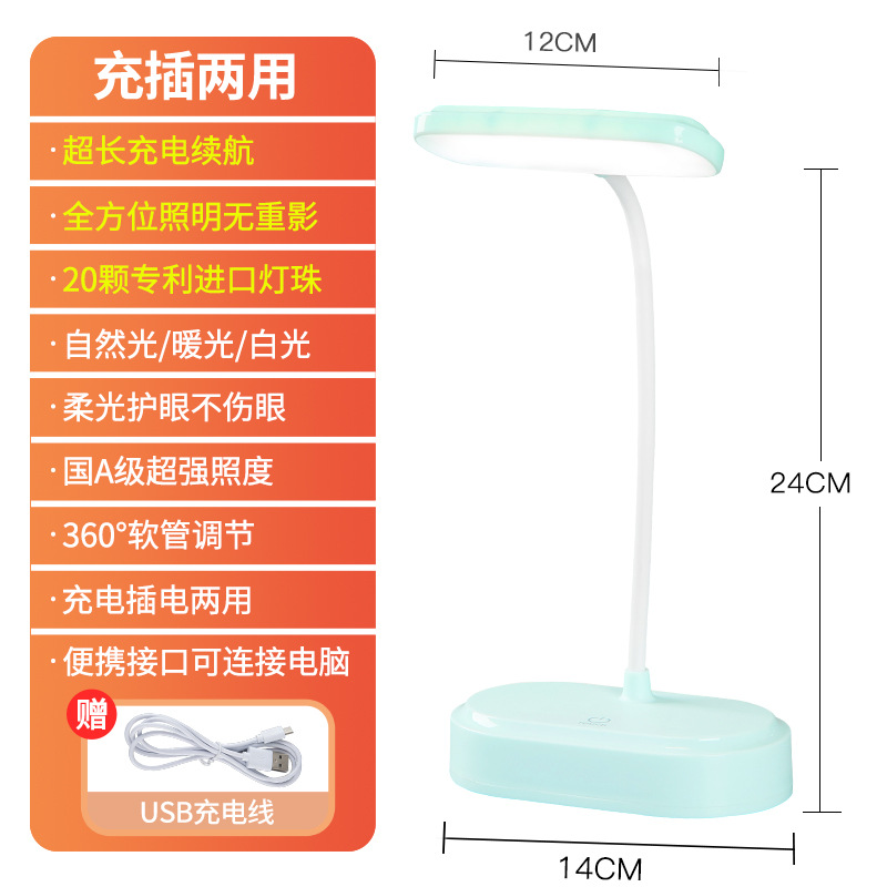 学习阅读台灯学生宿舍USB充电插电台灯三档色温无极调光