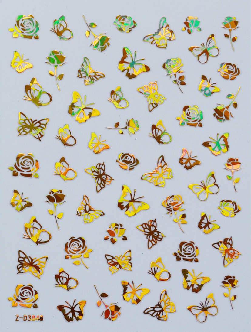 网红烫金色3d蝴蝶镂空背胶贴指甲饰品美甲贴纸