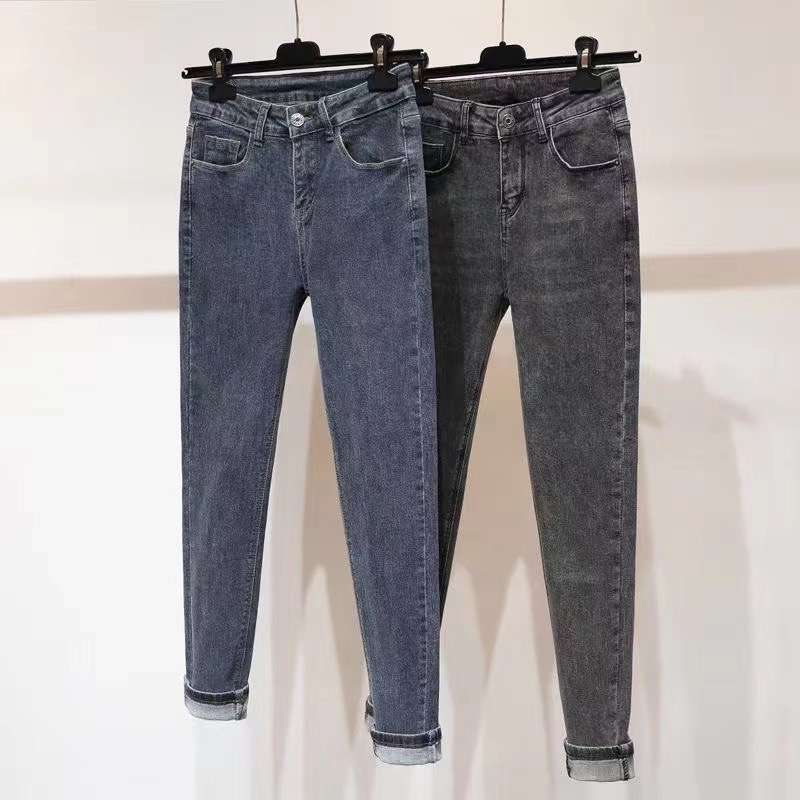 外贸跨境新款高腰牛仔裤秋冬女装加绒加厚长裤地摊批发