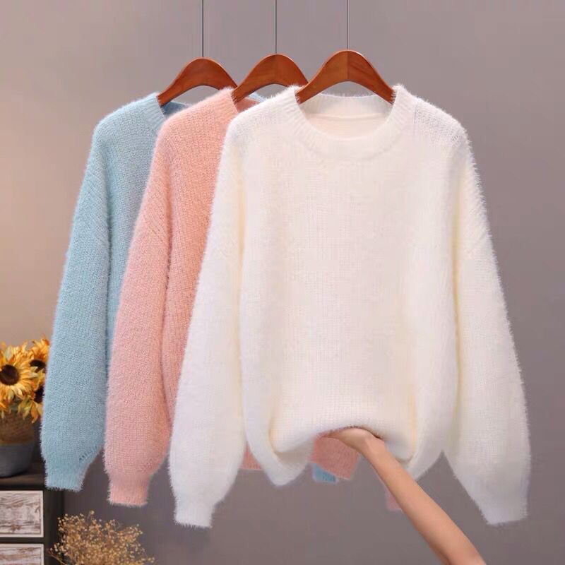 清仓捡漏秋冬水貂绒多款式毛衣女慵懒风秋冬宽松外穿针织衫加厚