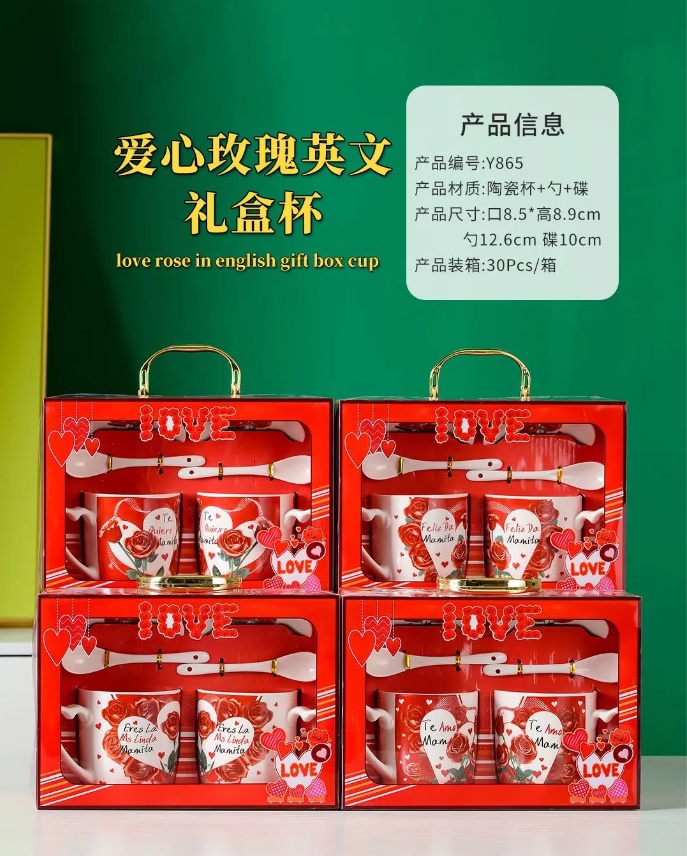 LOVE玫瑰礼盒双杯套装红色对杯喜庆结婚杯子婚庆用品