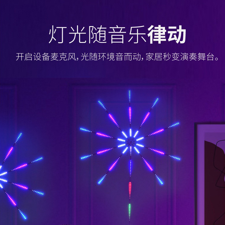 LED烟花灯 RGB幻彩圣诞氛围灯 遥控/手机蓝牙调光 流水跑马声控