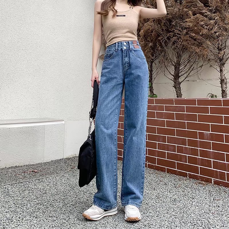 阔腿复古牛仔裤女春秋新款高腰宽松显瘦拖地直筒裤子女设计感小众