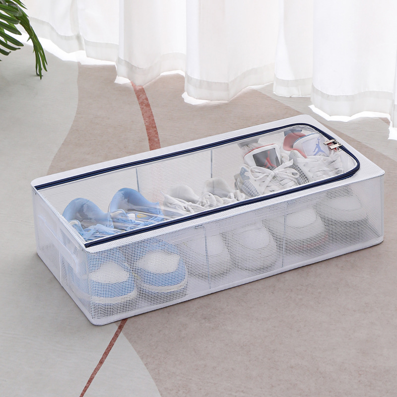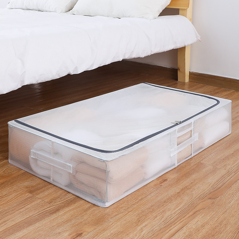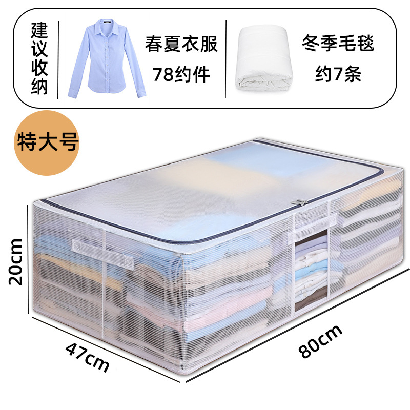 跨境透明PVC夹网床底布艺收纳箱衣物收纳翻盖钢架箱整理箱储物箱