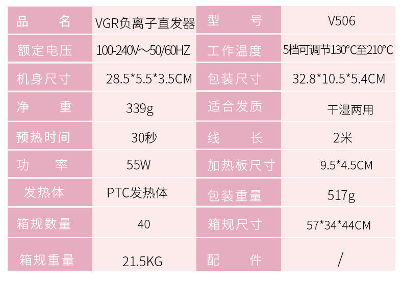 VGR506电夹板家用美发工具直发器卷发器内扣梨花烫可调温不伤发