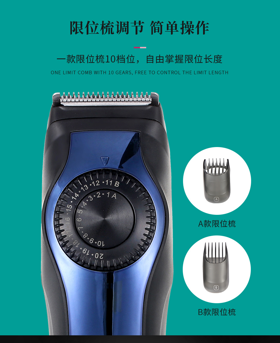 跨境电商VGR080数显电推剪可调节齿距发廊电推子男士家用理发器