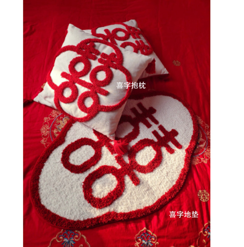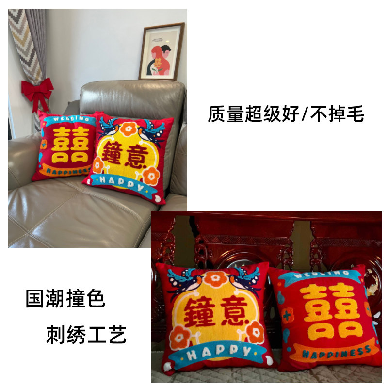 中式红双喜字立体绣花婚庆抱枕 装饰靠枕结婚婚房卧室礼物枕头套