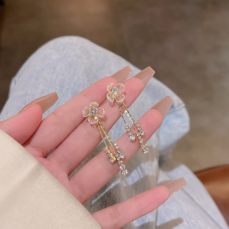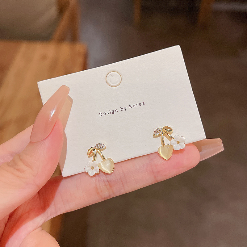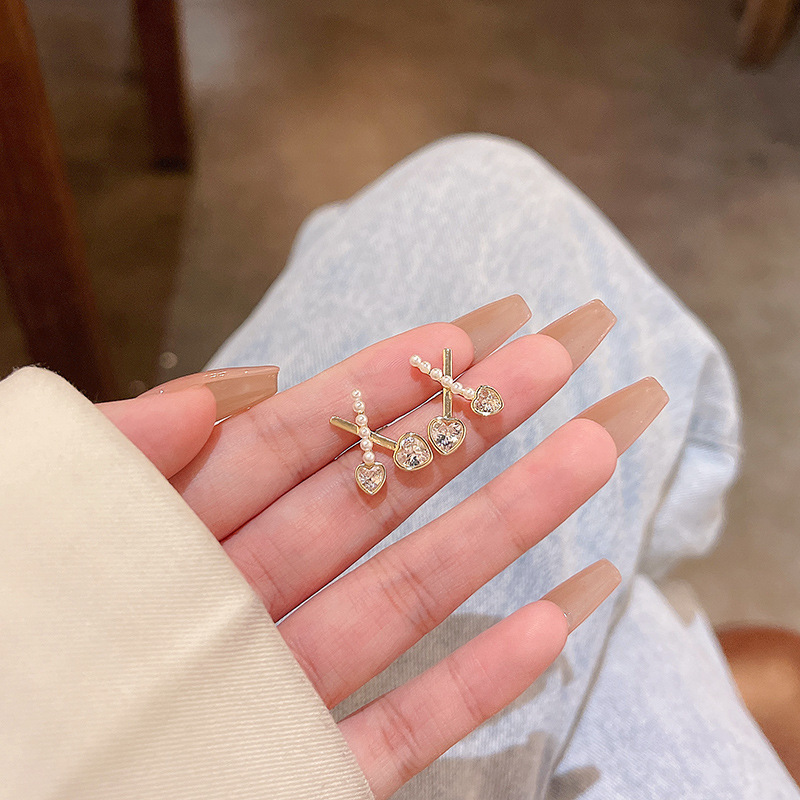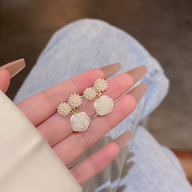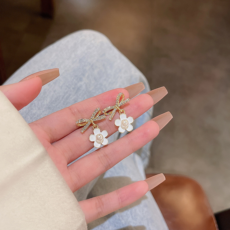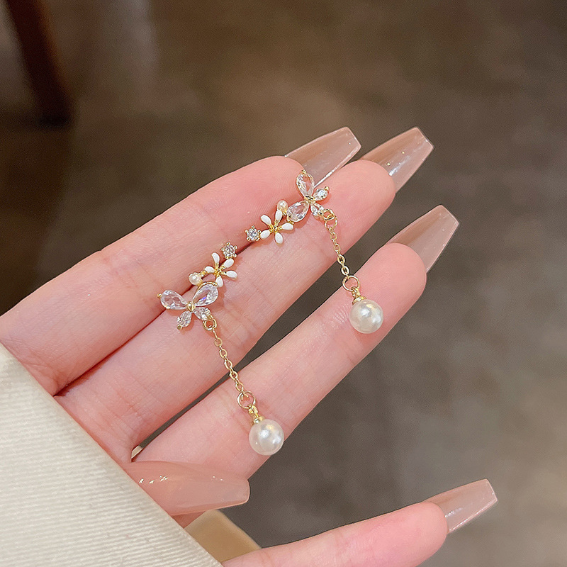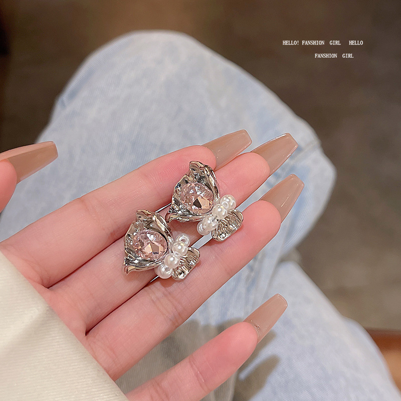 饰品S925银针轻奢珍珠耳环女高级设计感锆石百搭气质花朵耳钉耳饰