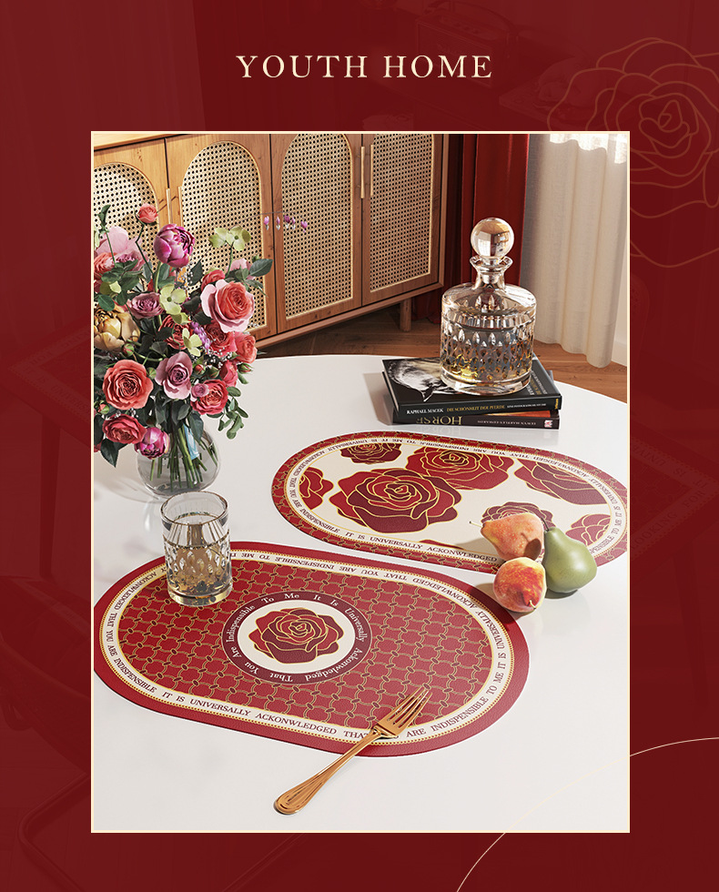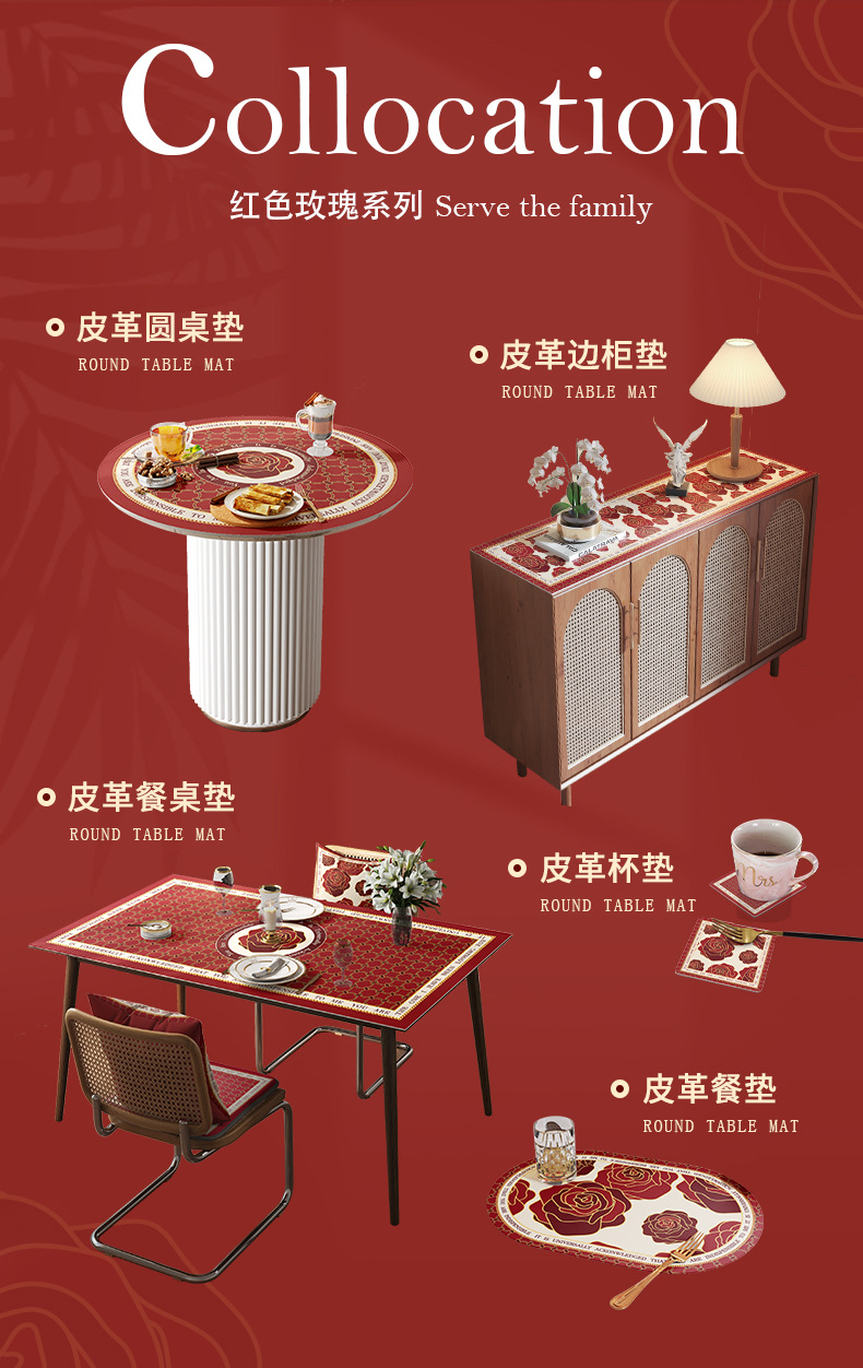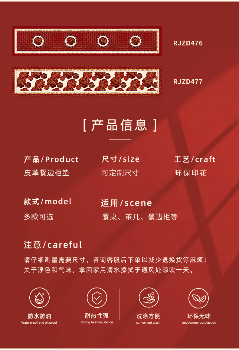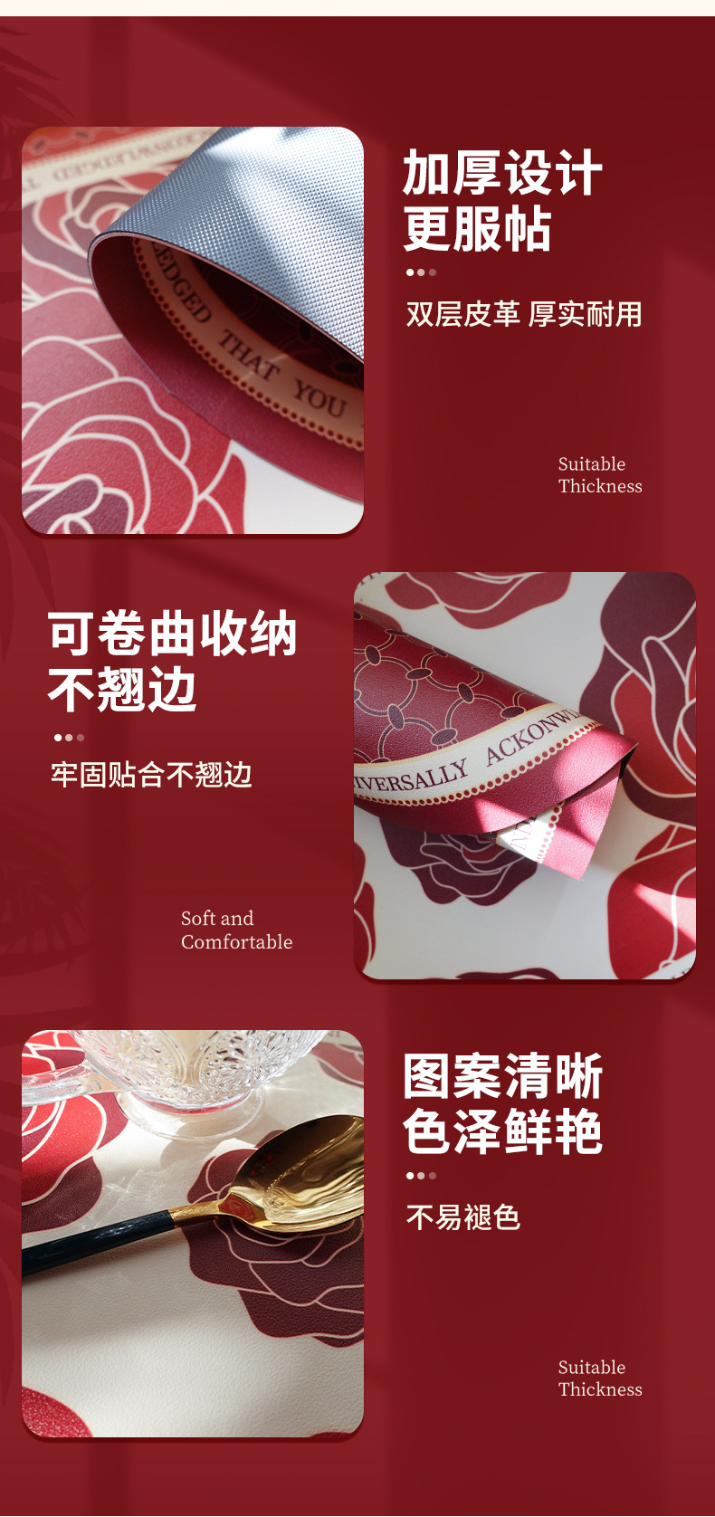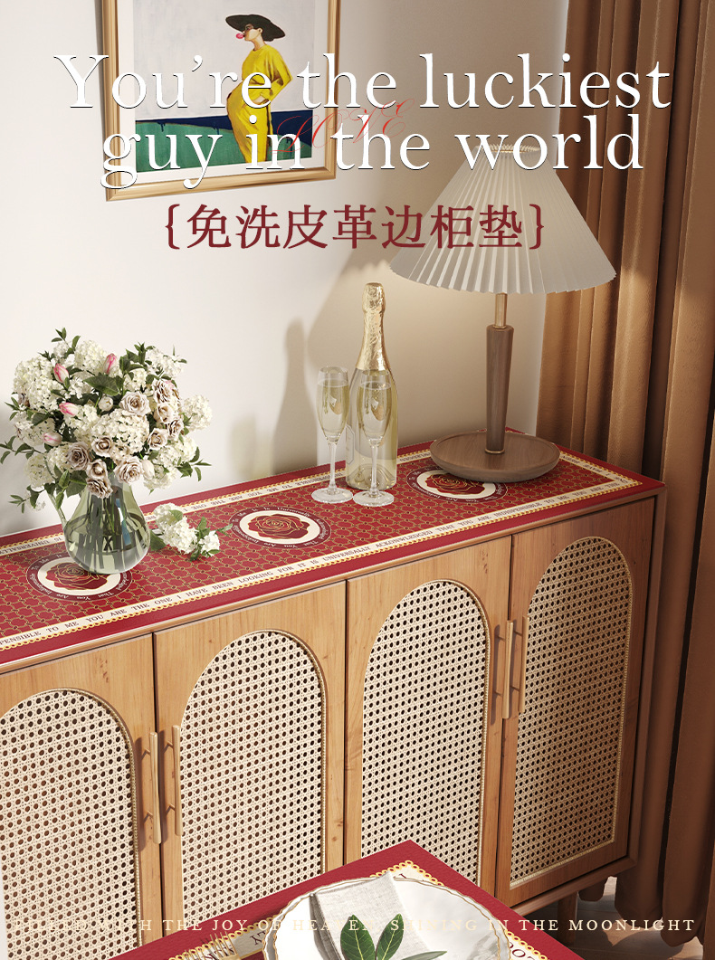 美式餐边柜皮革垫子防水防油免洗轻奢高级感餐桌茶几桌布