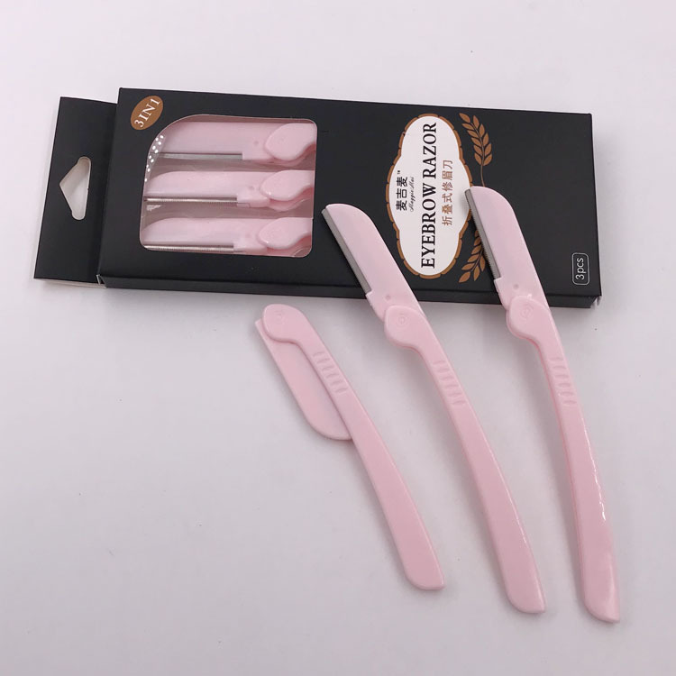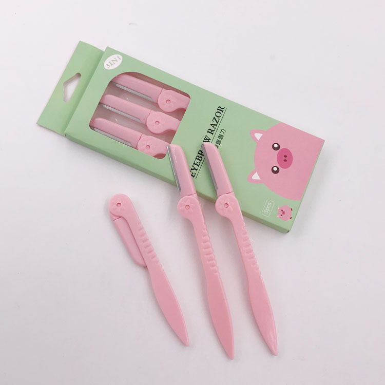 卡通眉刀折叠修眉刀3支装套装网纹防护刮眉刀锋利刀片多种颜色