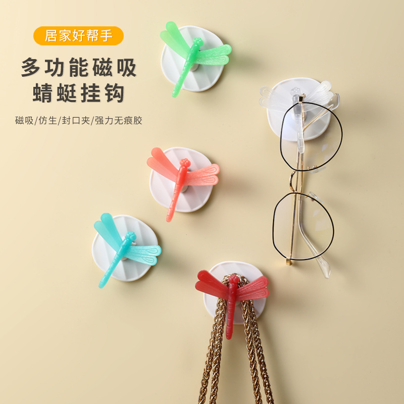 夜光蜻蜓多功能蜻蜓挂钩食品袋密封夹 无痕免打孔粘钩蜻蜓冰箱贴