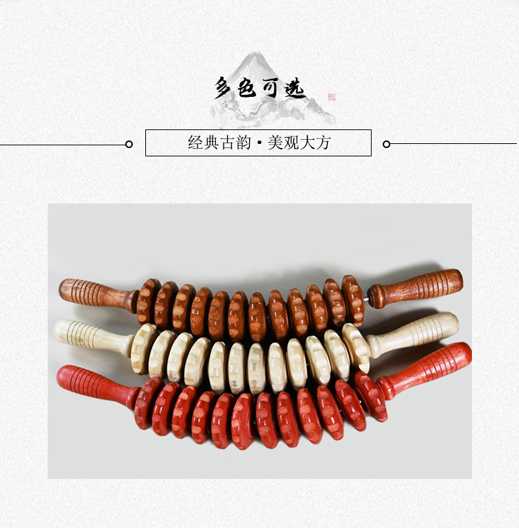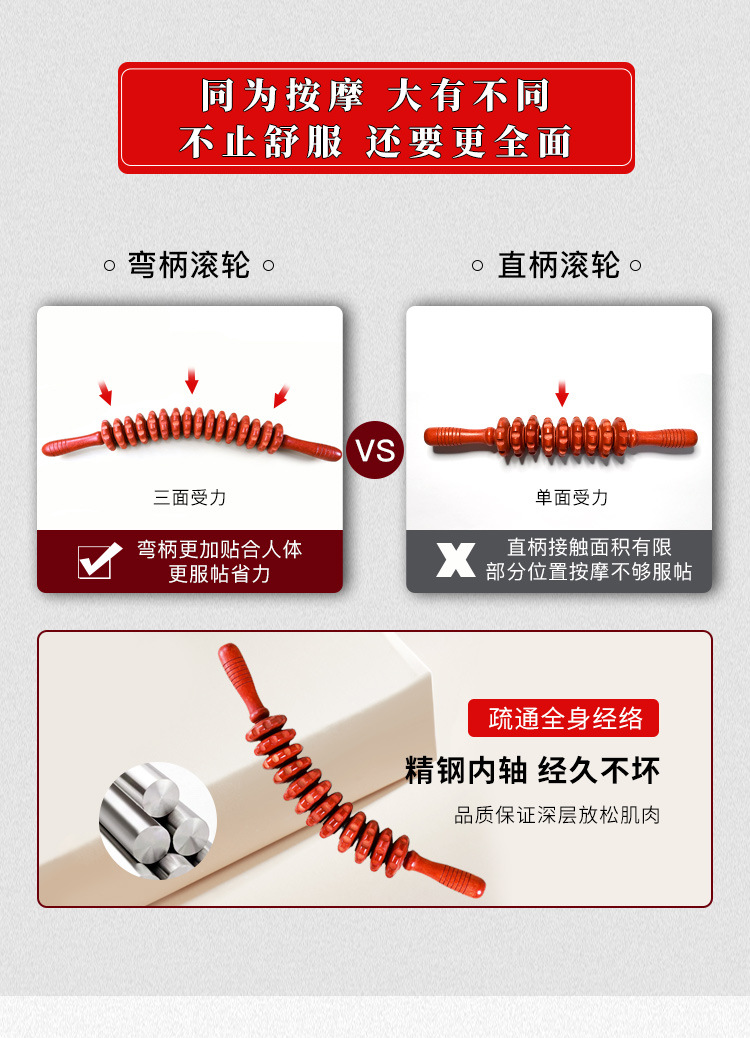 新款热销弯柄实木按摩棒背部腹部肩颈穴位按摩器手动滚轮按摩轮