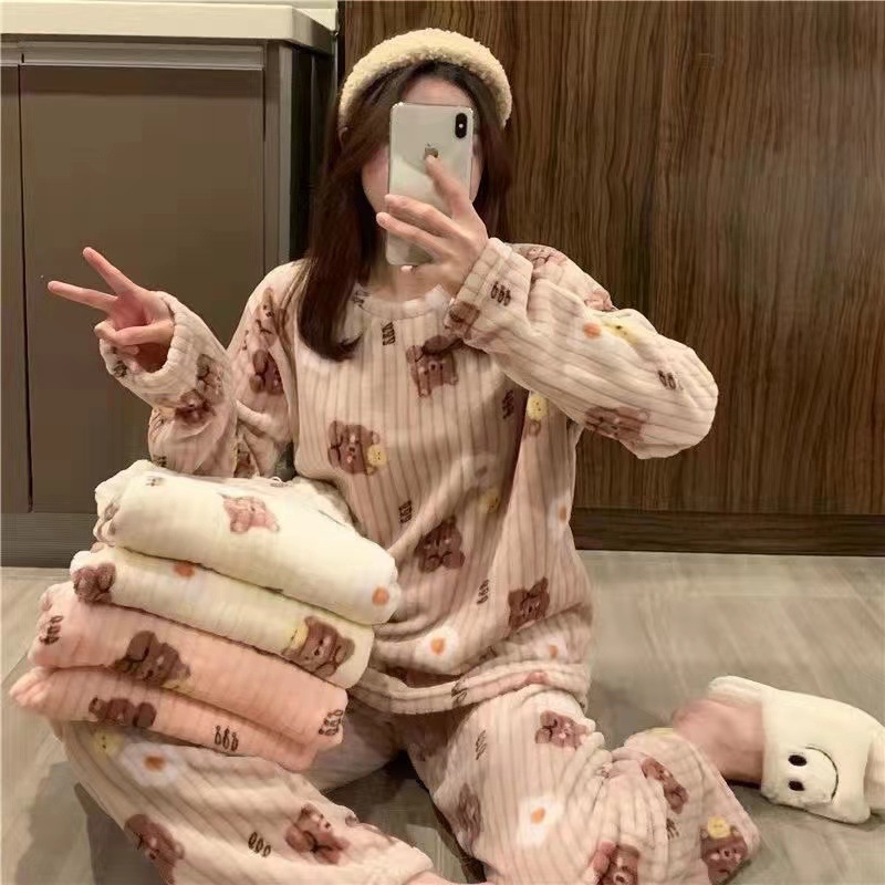 2022秋冬暖暖套装套装休闲家网红珊瑚绒套装小熊印花加厚保暖