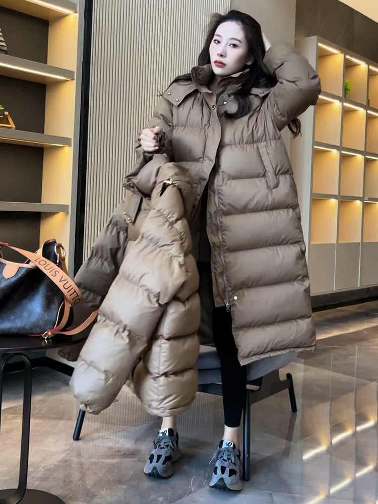 2022年新款韩版宽松中长款加厚面包服设计感小众羽绒服女短外套潮