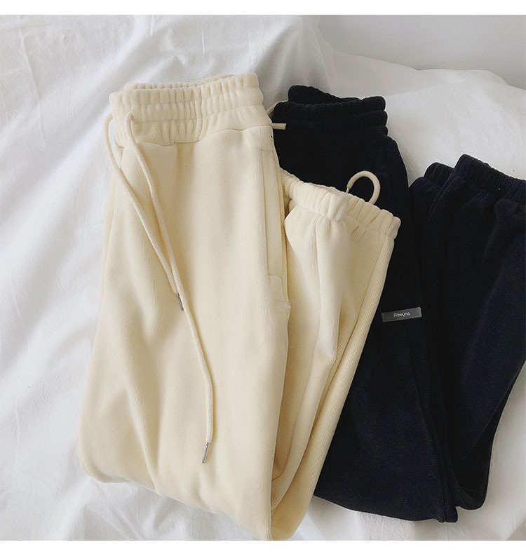 温暖软糯秋冬季运动裤女加绒加厚外穿长裤宽松显瘦休闲裤束脚卫裤