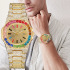 亚马逊嘻哈镶钻男表 彩色方钻时尚合金带石英表日历手表男现货