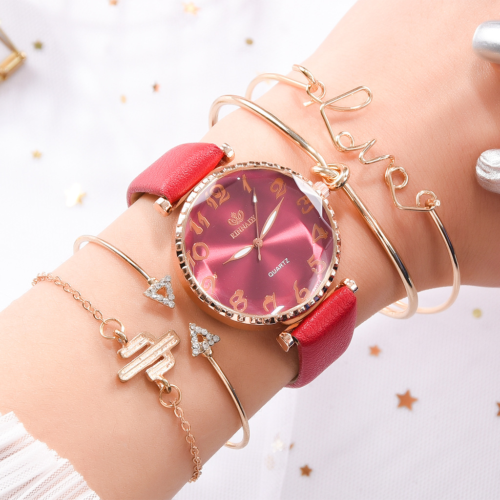 礼品表饰品手表装饰手表石英表女款手镯手表套装五件套磁铁扣腕表