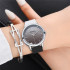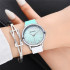 渐变色星空粉底表盘女士手表 双拼色皮带手表 简约罗马表盘女表