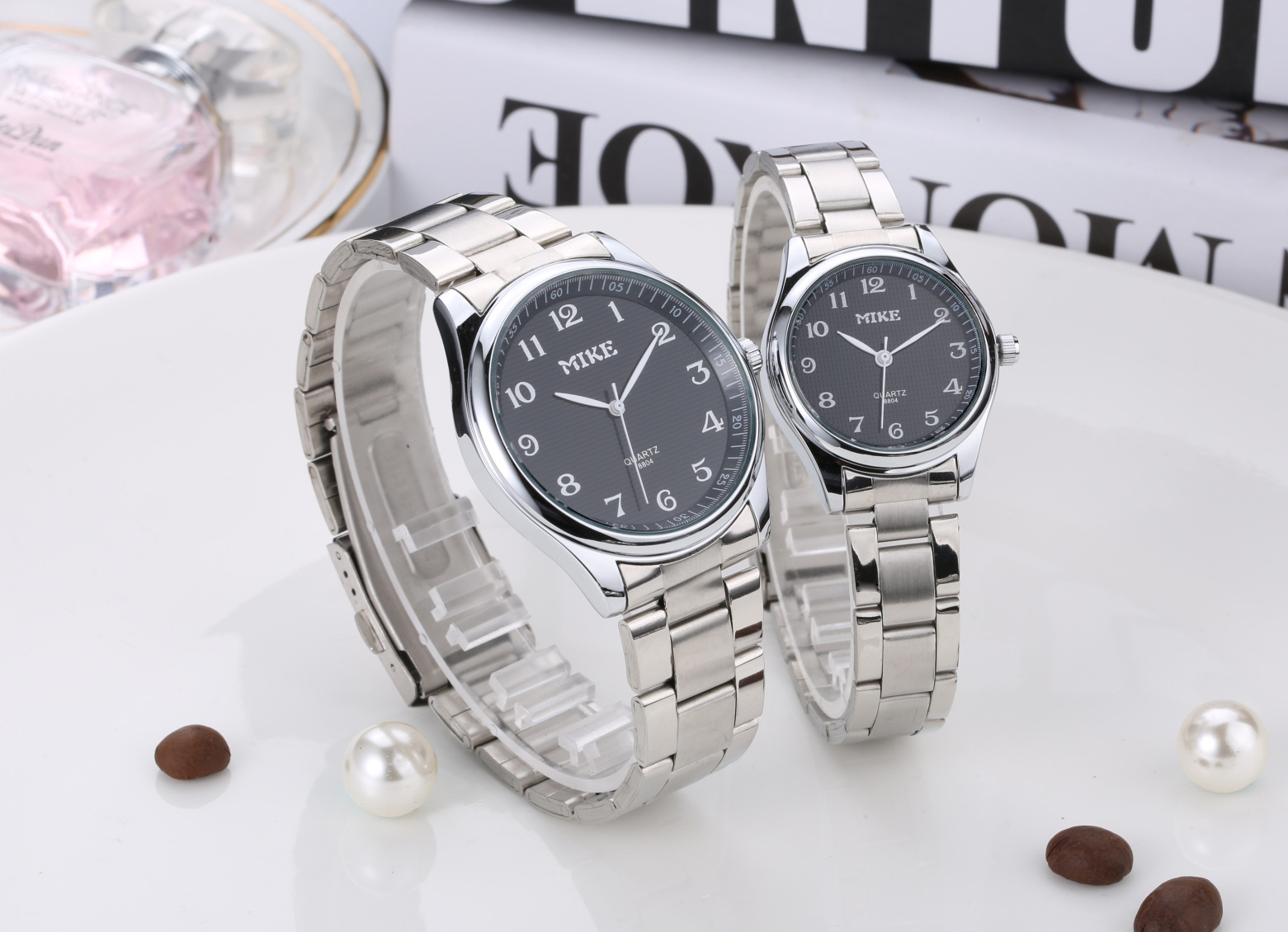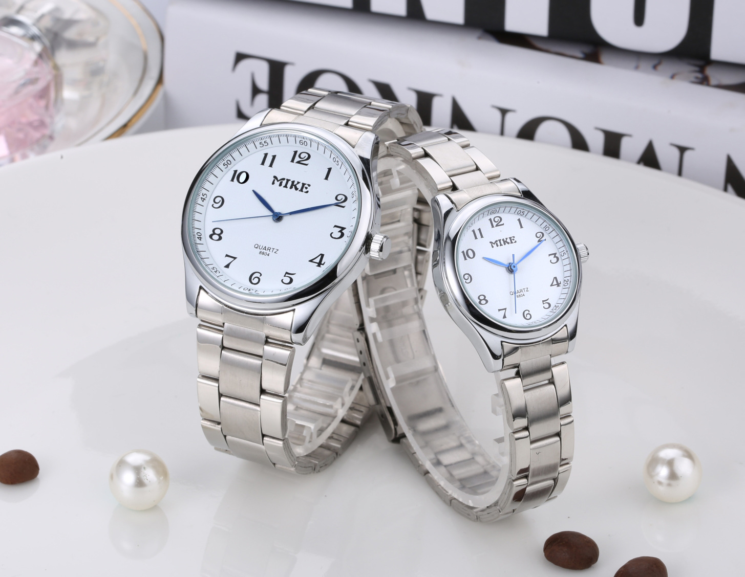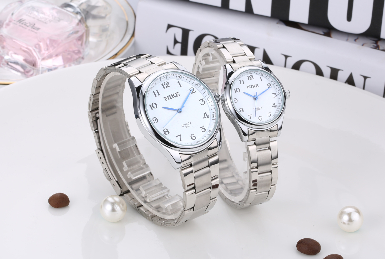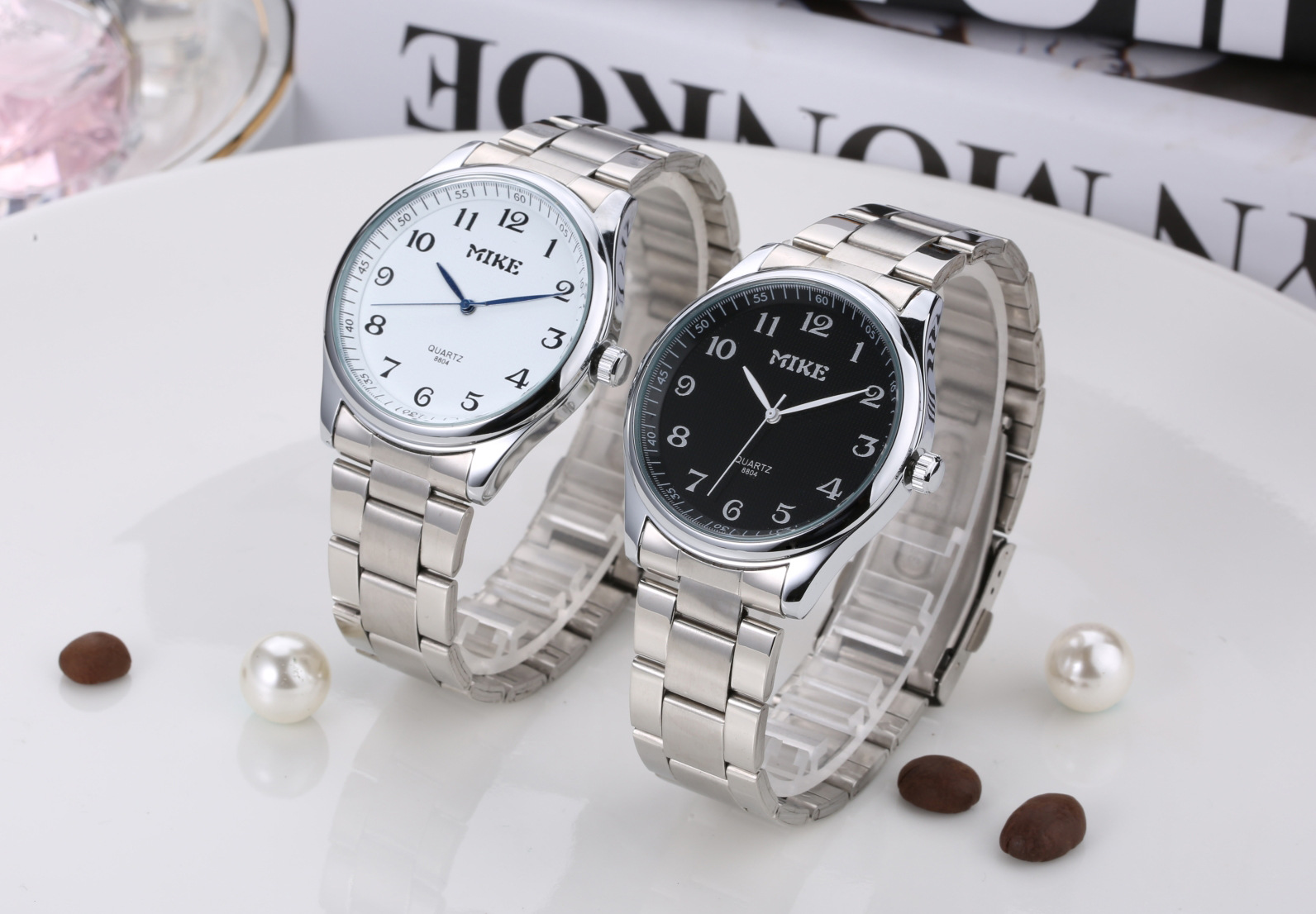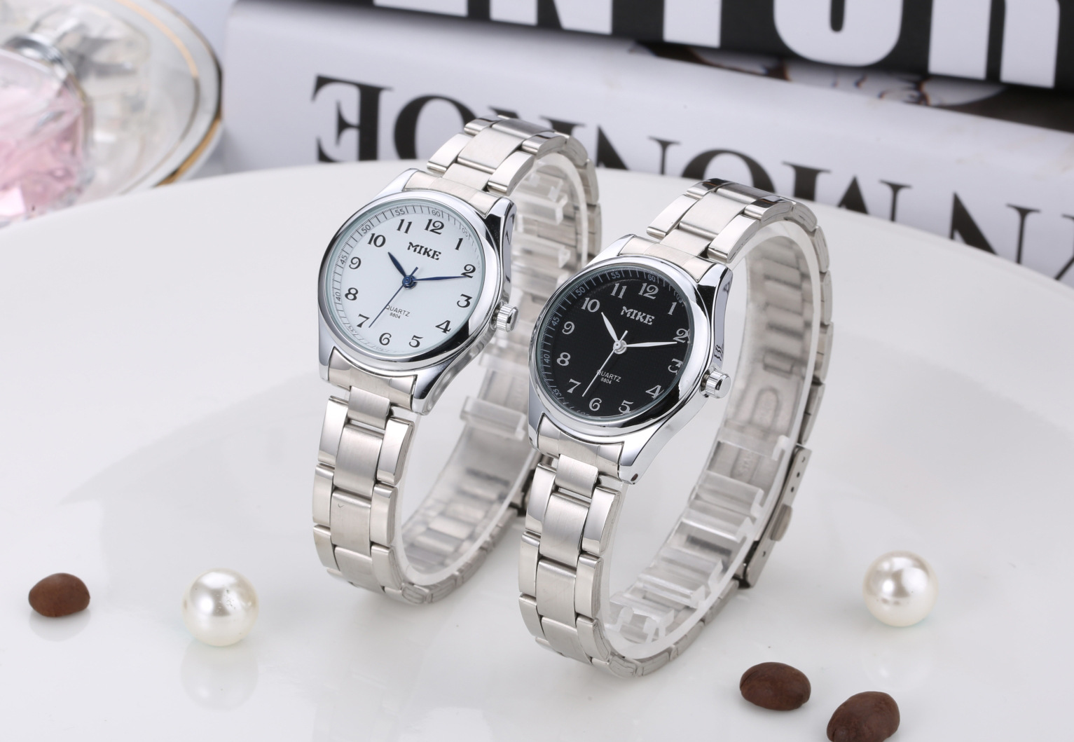新款米可MIKE休闲大数字老年人清晰表钢带防水情侣手表批发销售
