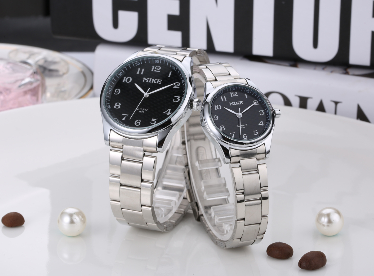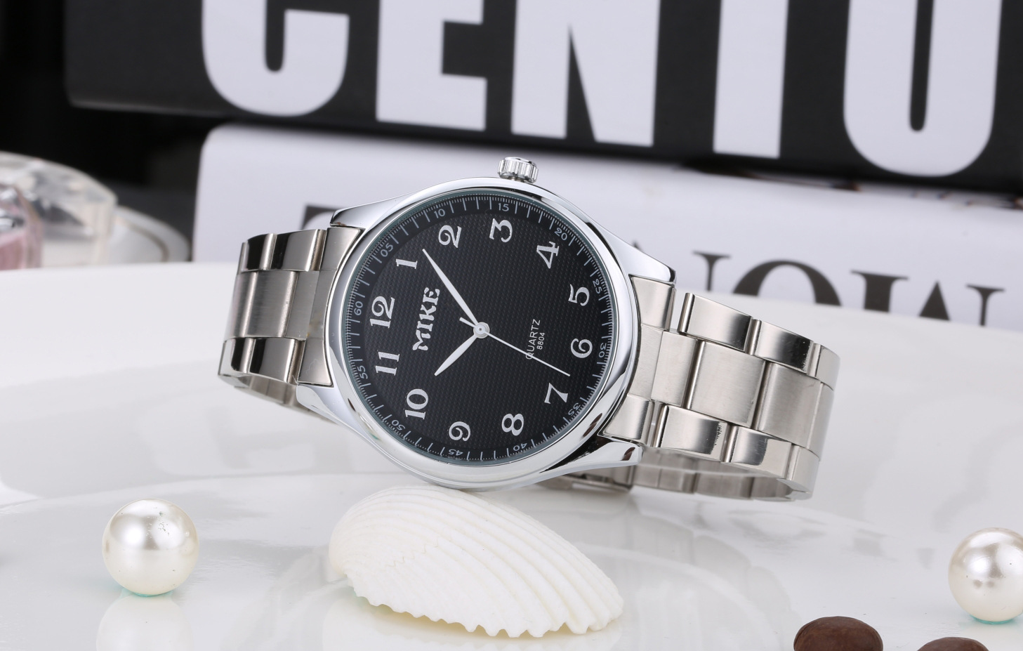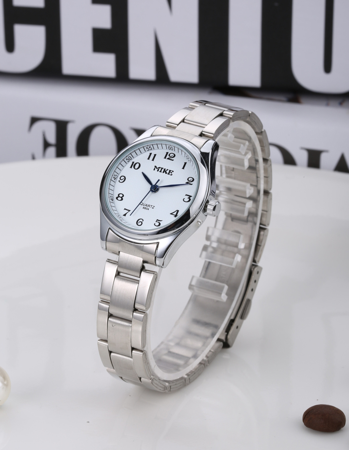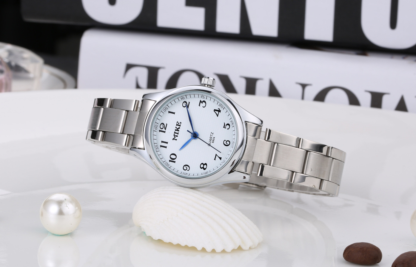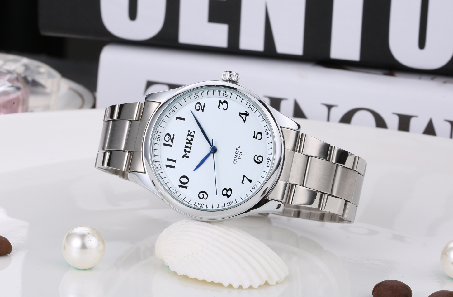 新款米可MIKE休闲大数字老年人清晰表钢带防水情侣手表批发销售