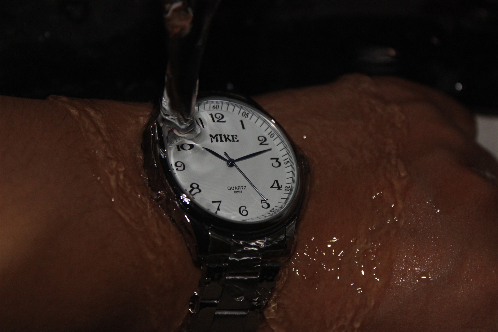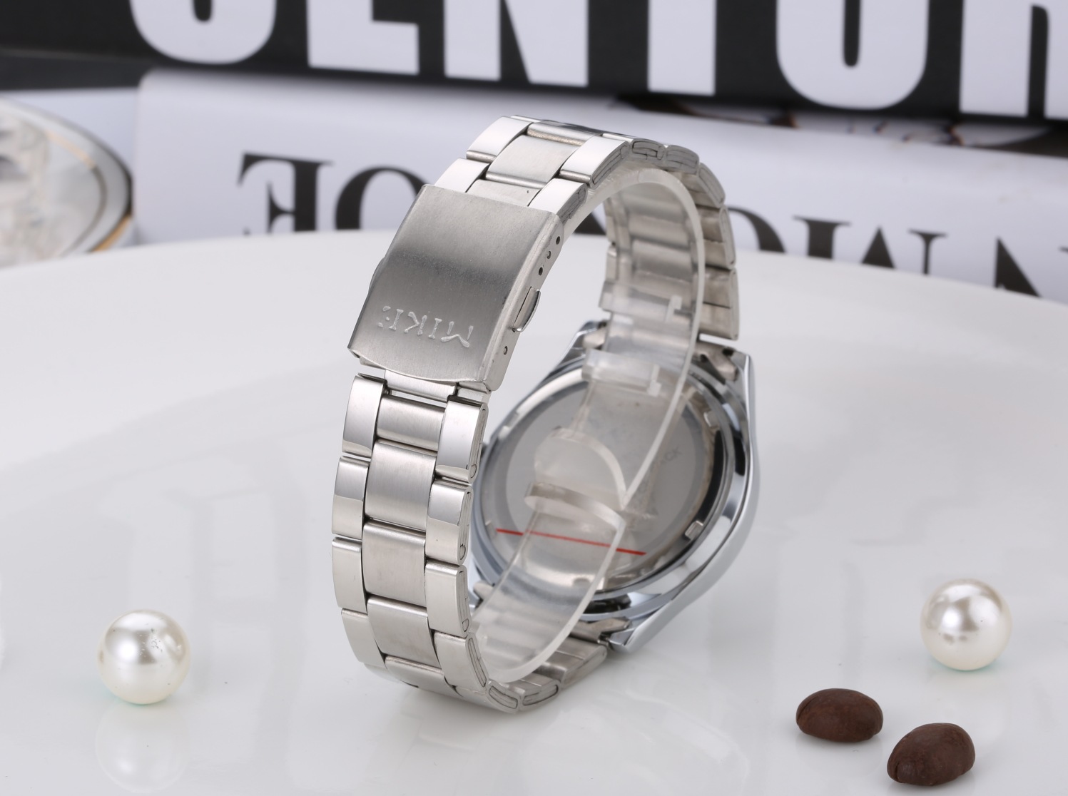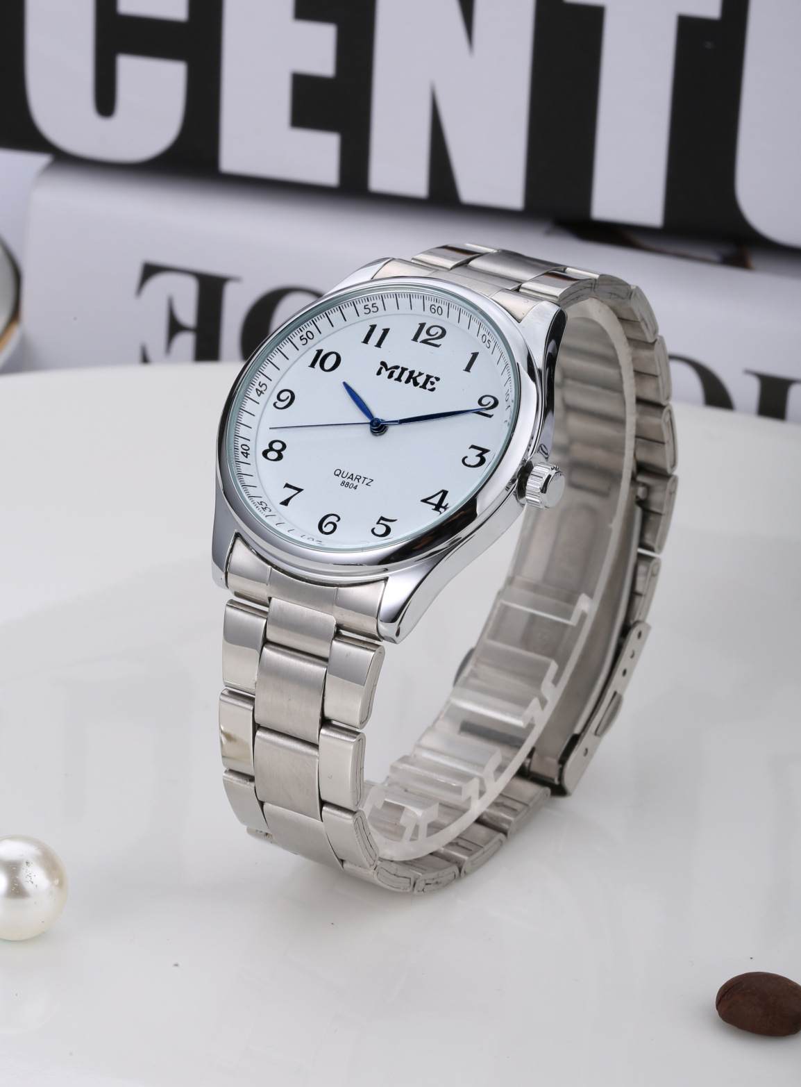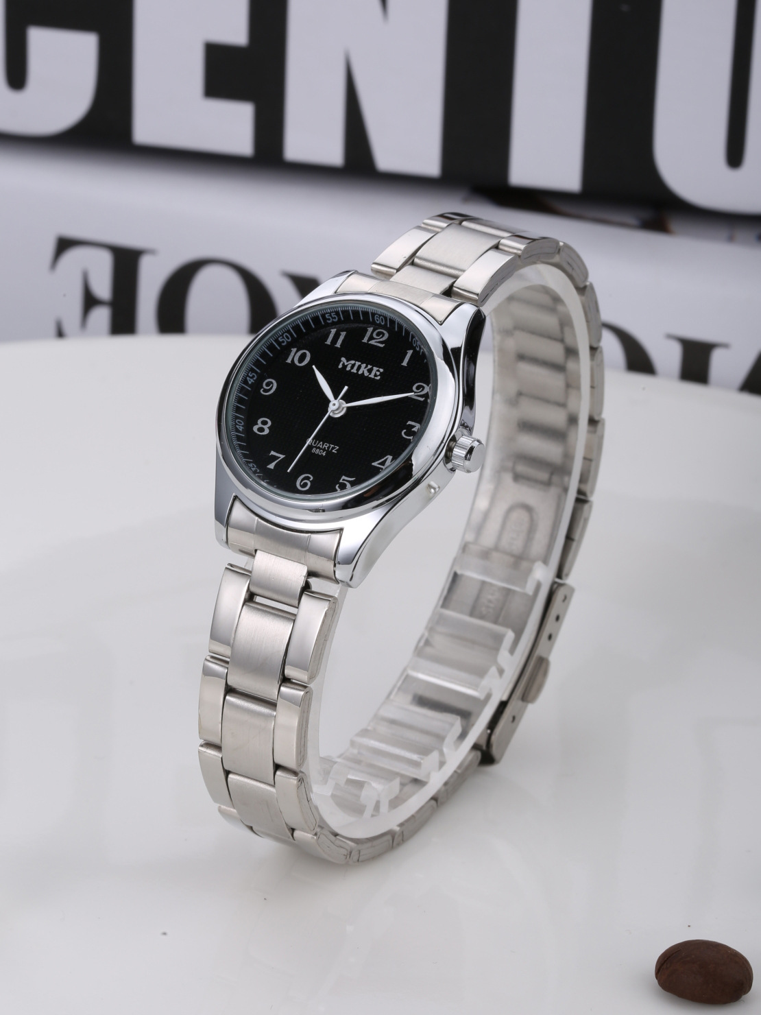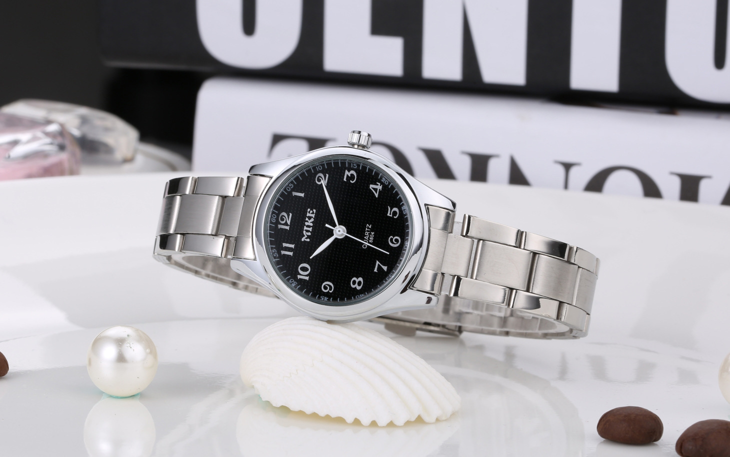 新款米可MIKE休闲大数字老年人清晰表钢带防水情侣手表批发销售
