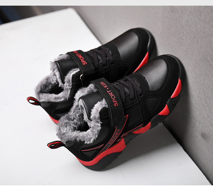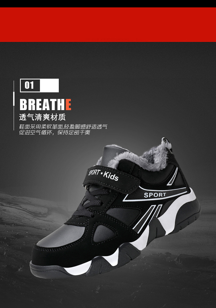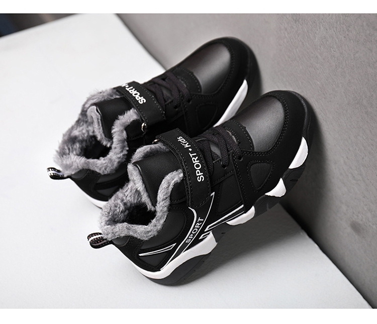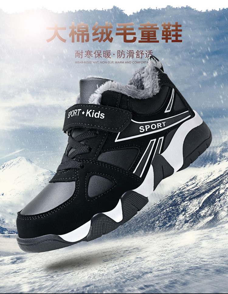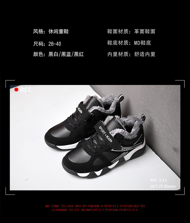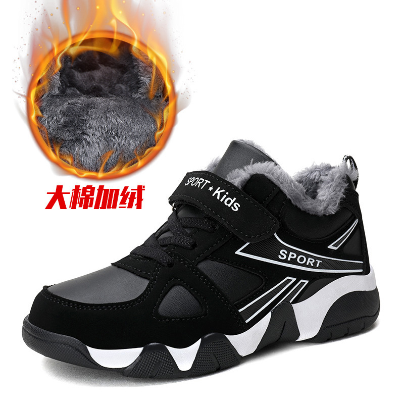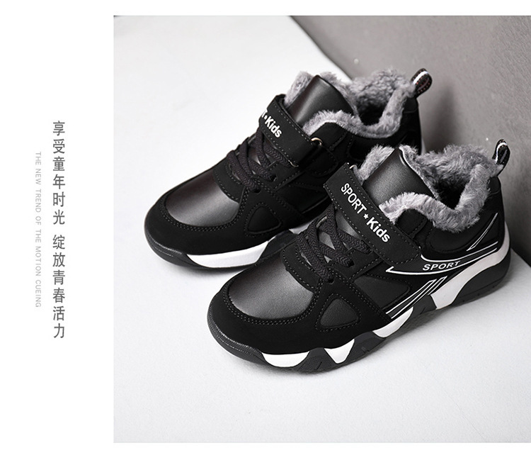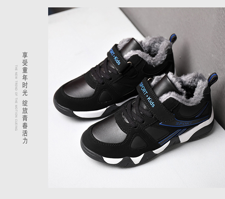 男童鞋子冬季棉鞋皮面防水加绒新款中大童7-12岁秋冬款儿童运动鞋
