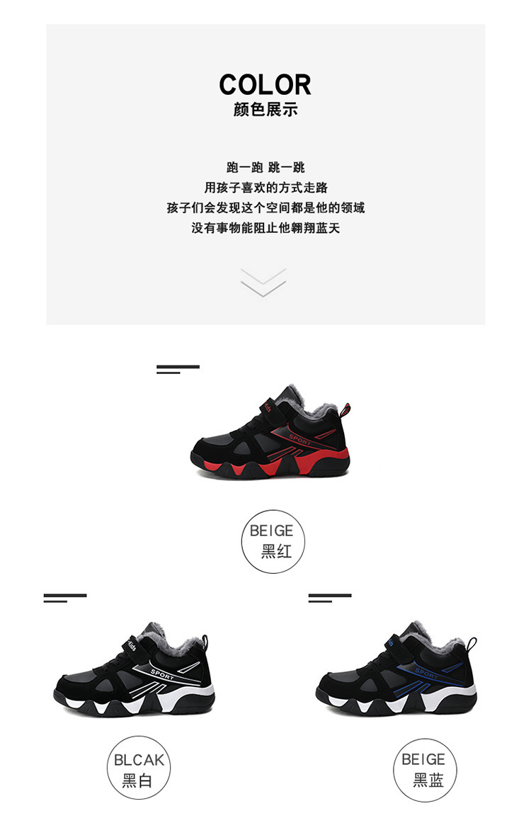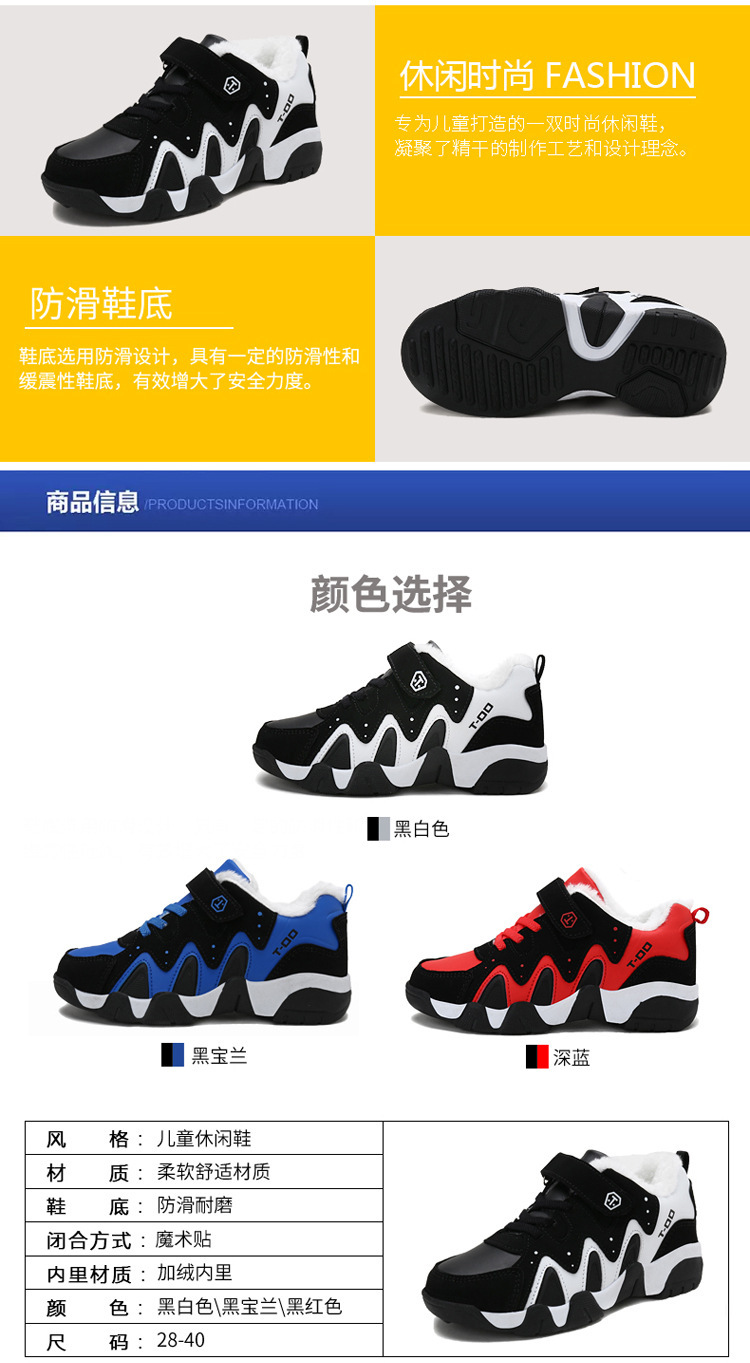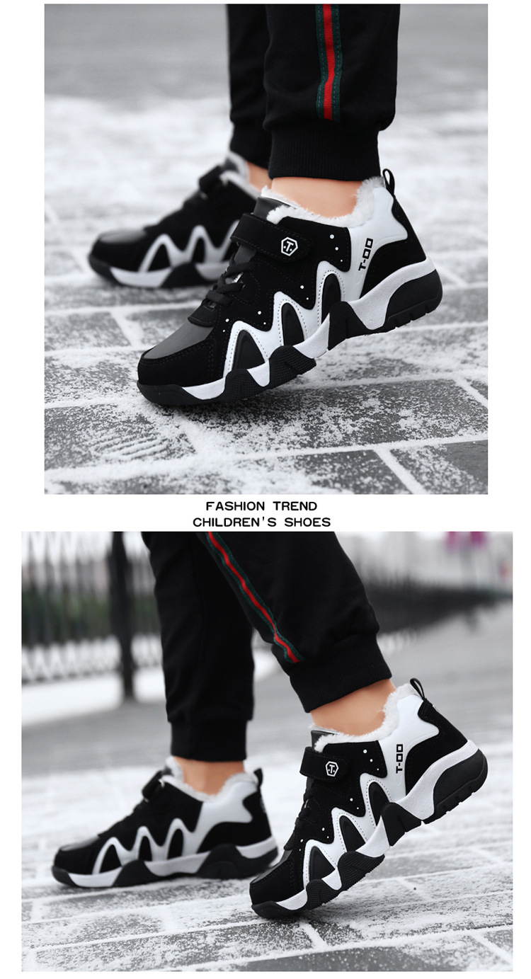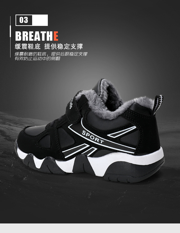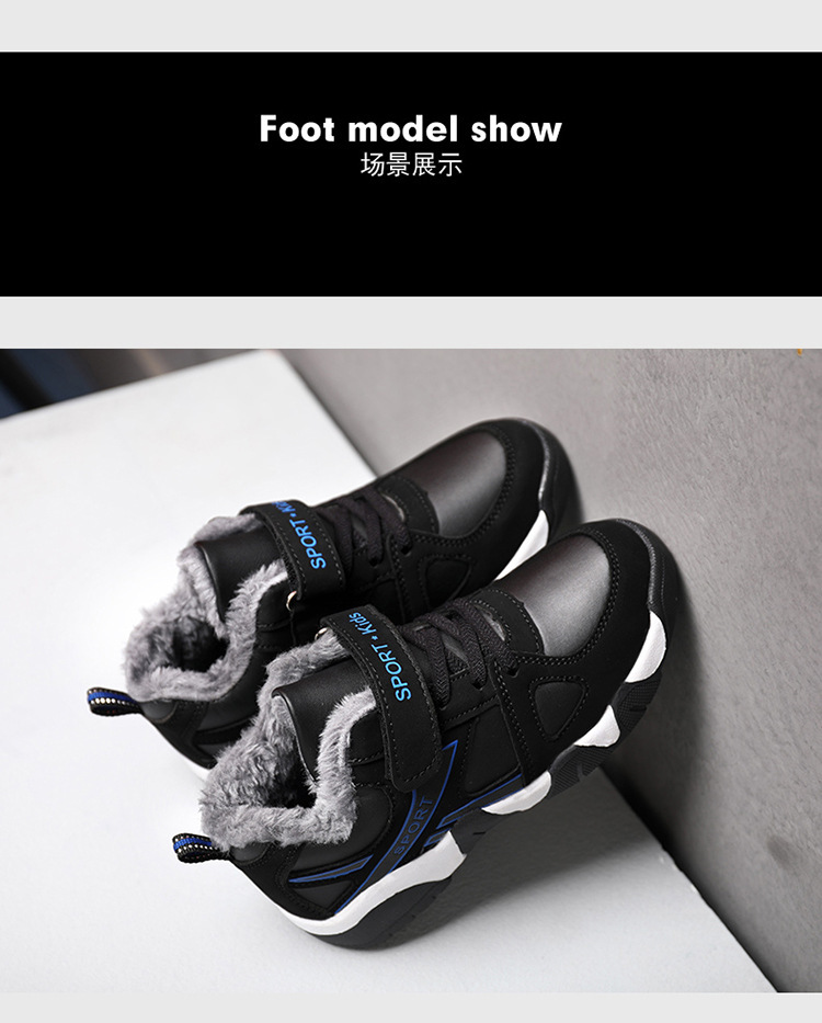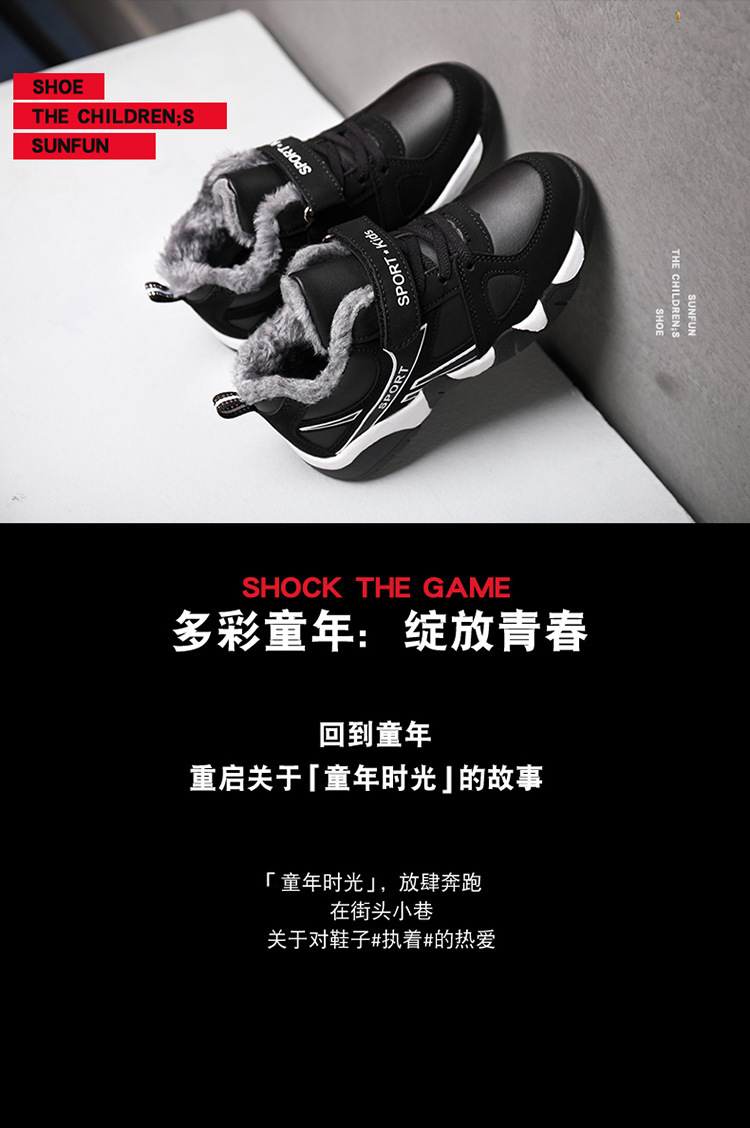 男童鞋子冬季棉鞋皮面防水加绒新款中大童7-12岁秋冬款儿童运动鞋