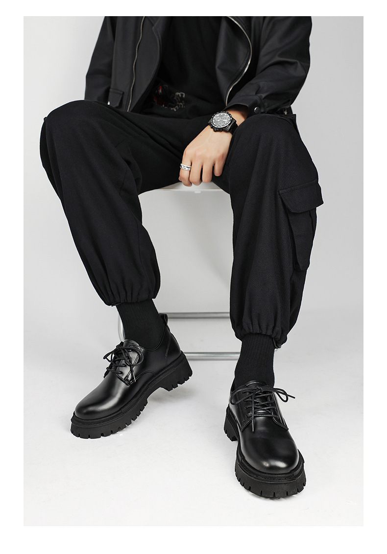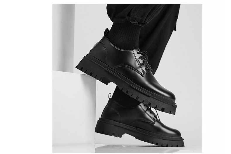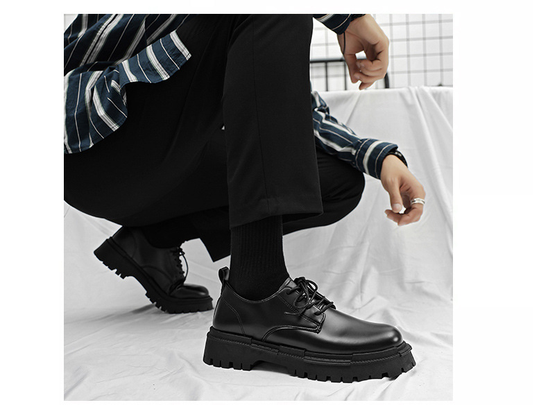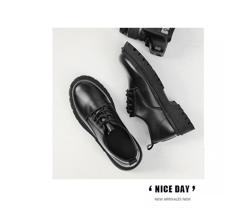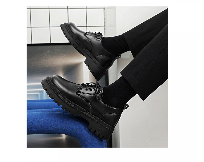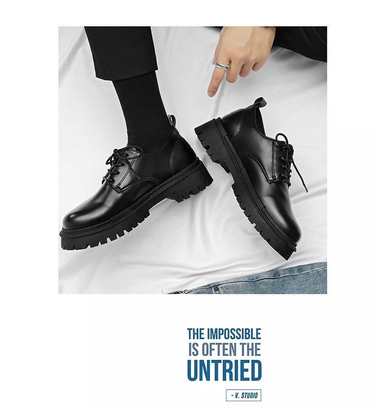 2022年外贸黑色小皮鞋英伦风男士商务休闲皮鞋青年短靴户外工装鞋